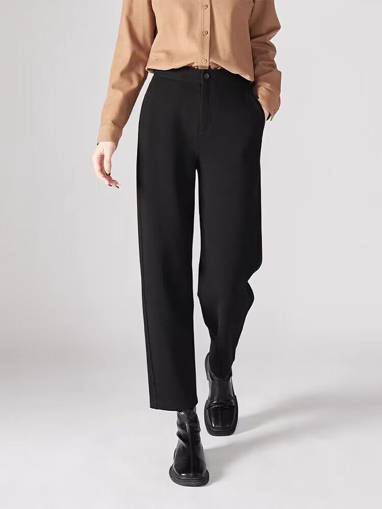 오리지널 품질의 두꺼운 보온 9부 스트레이트 팬츠 2024 겨울 신상 패션 캐주얼 하이웨이스트 스모크 팬츠 여성용 블랙