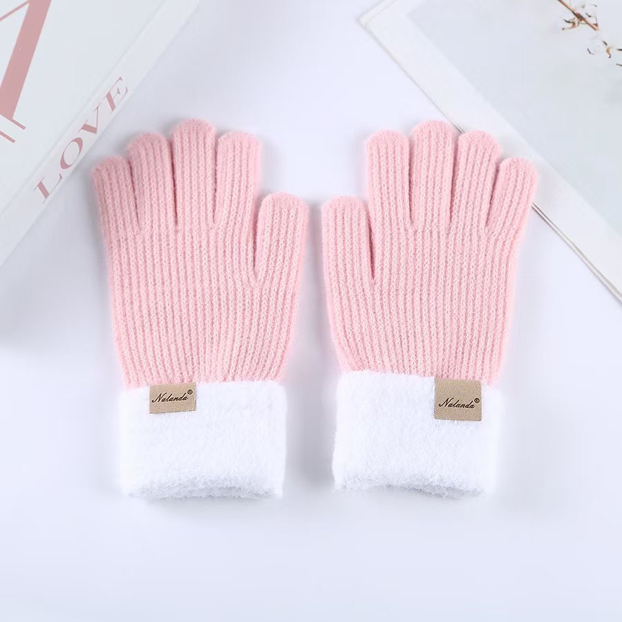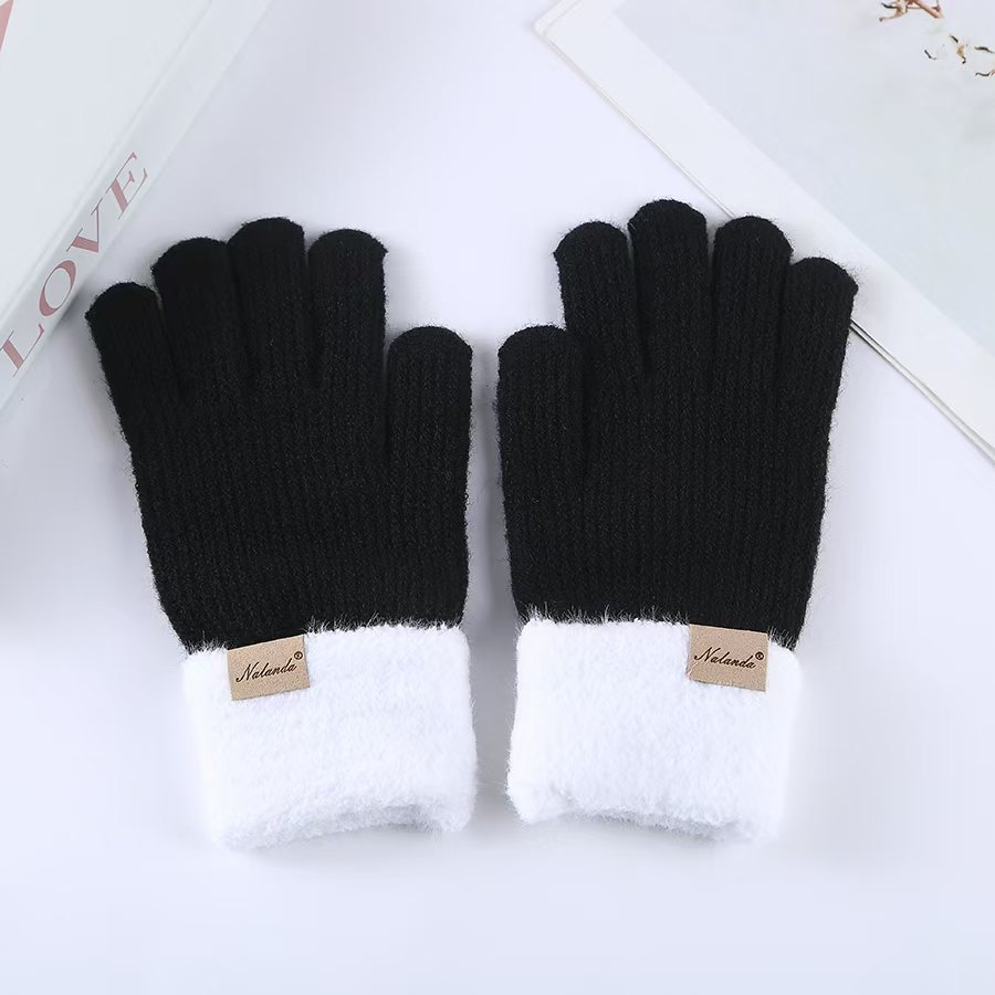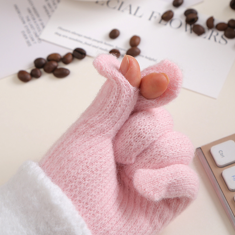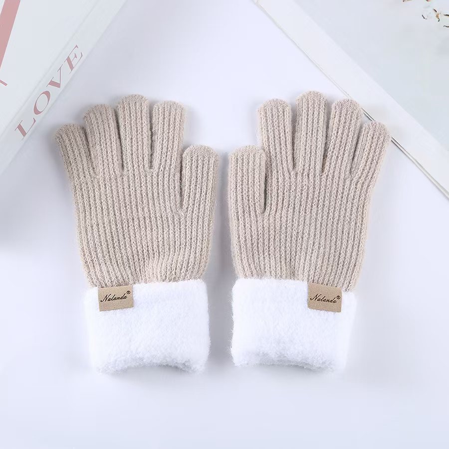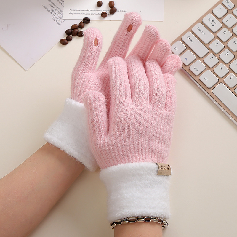 니트 장갑, 크로스보더 아웃도어 라이딩용, 오픈형, 두꺼운 울 소재, 보온성, 단색, 여성용, 터치스크린 장갑