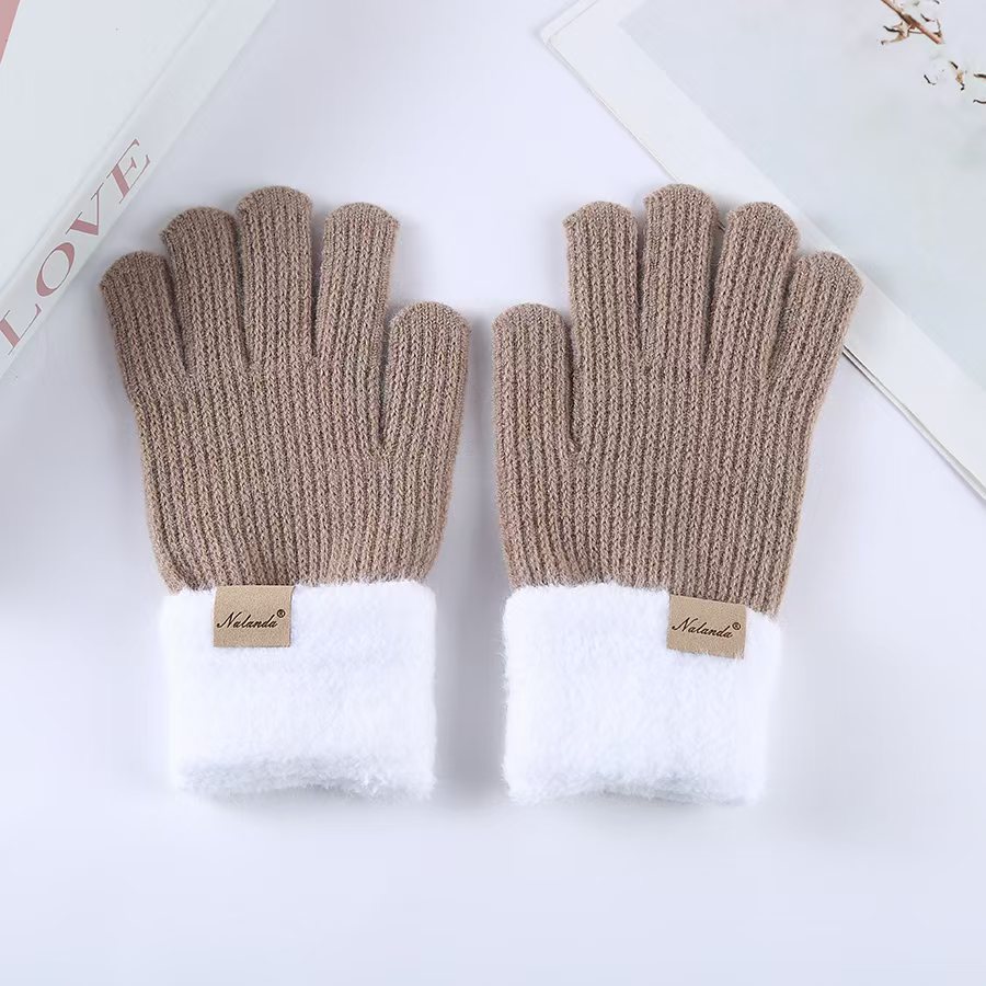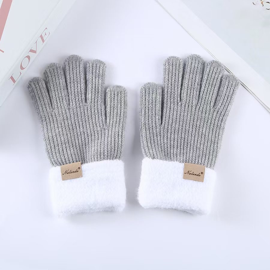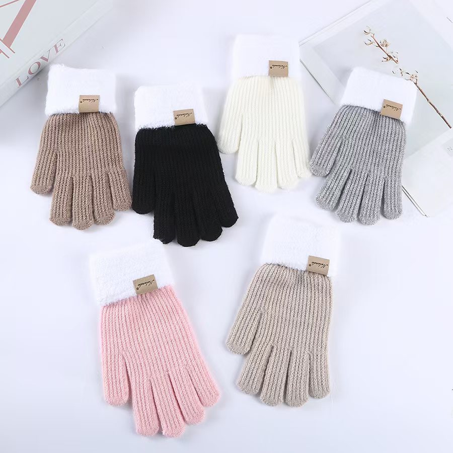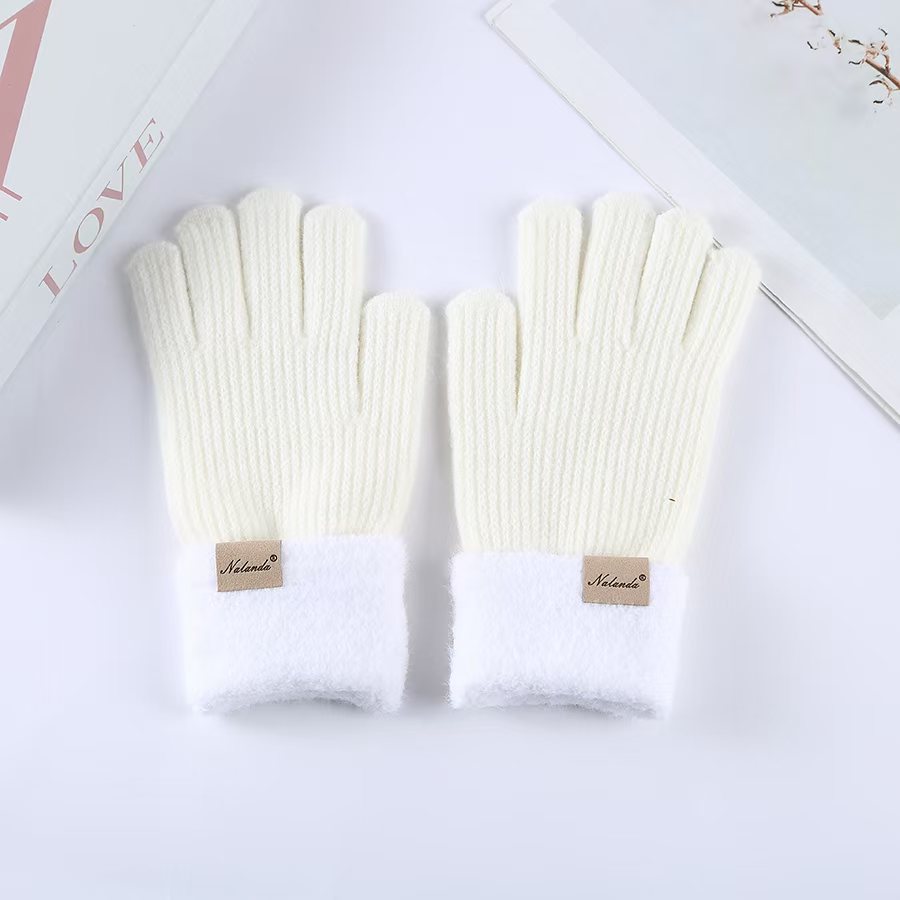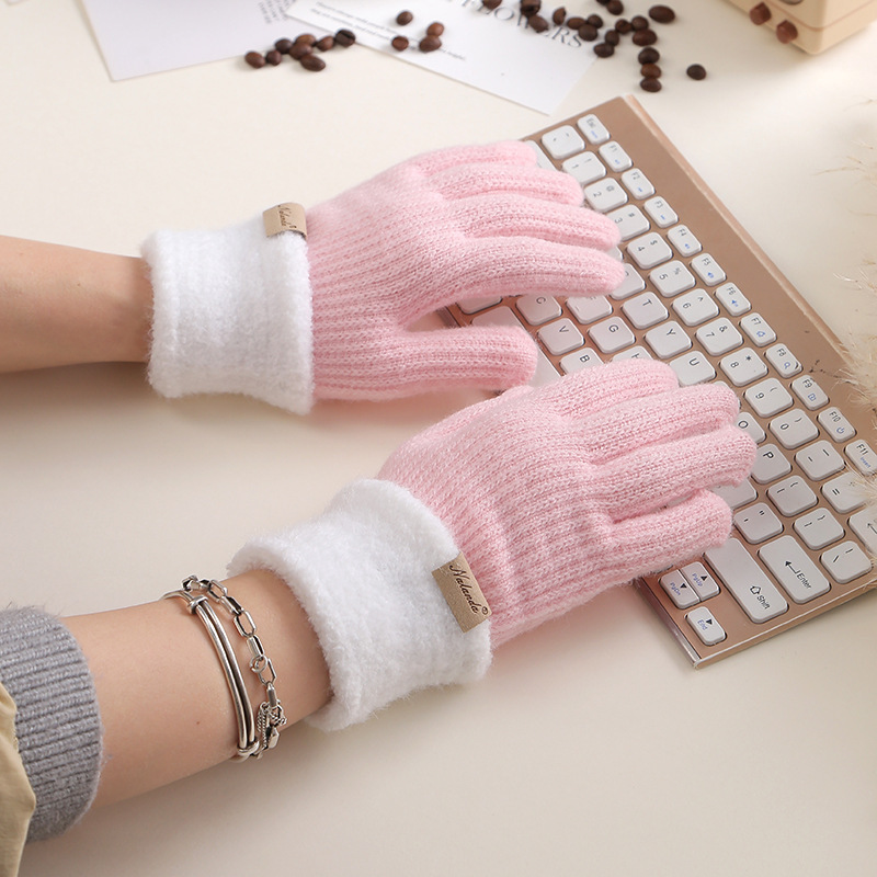 니트 장갑, 크로스보더 아웃도어 라이딩용, 오픈형, 두꺼운 울 소재, 보온성, 단색, 여성용, 터치스크린 장갑
