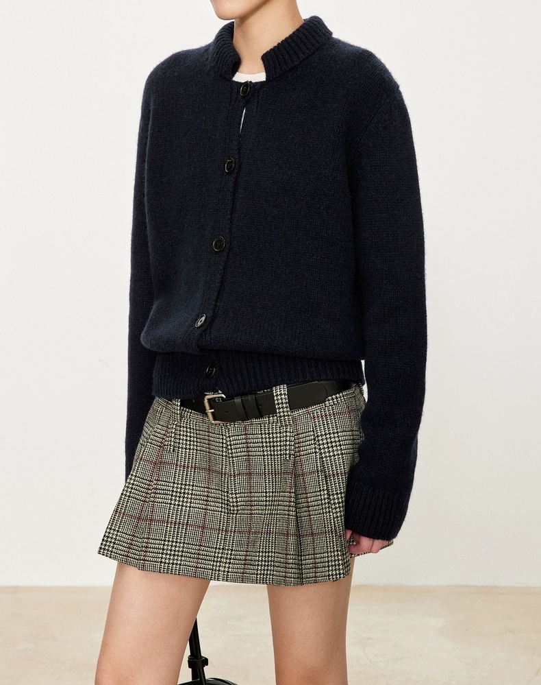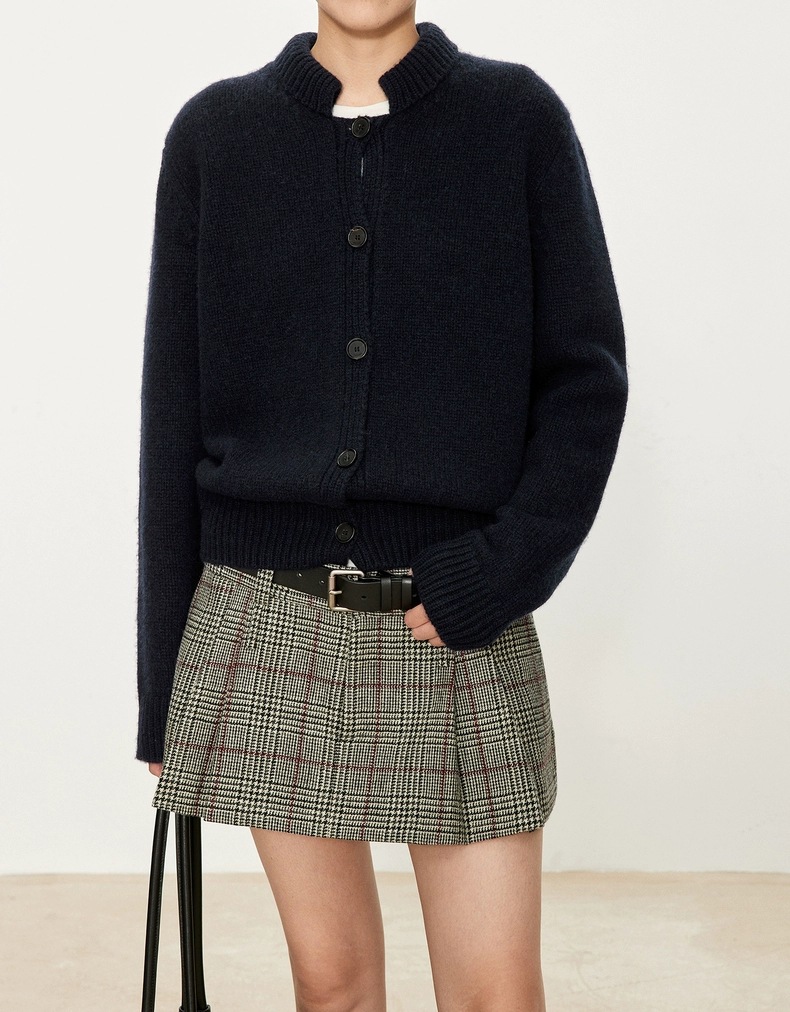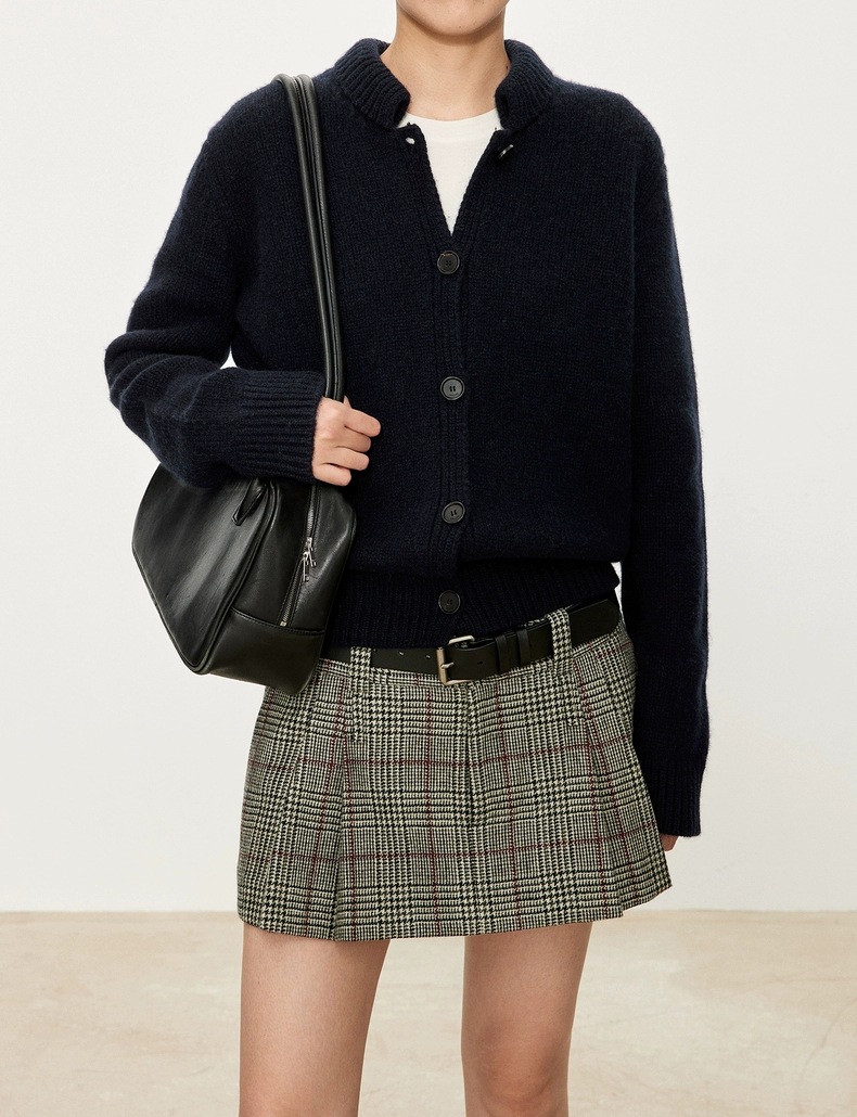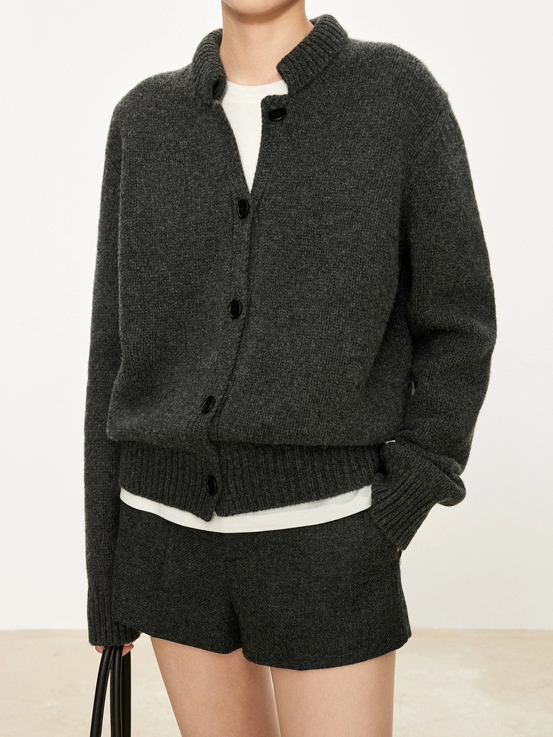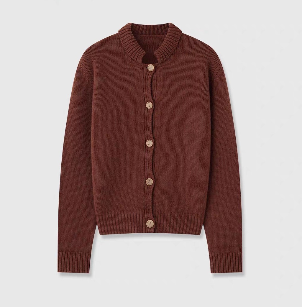 가을과 겨울 2024 새로운 순수 울 하이 엔드 라이트 럭셔리 레트로 칼라 니트 카디건 솔리드 컬러 소프트 왁스 탑