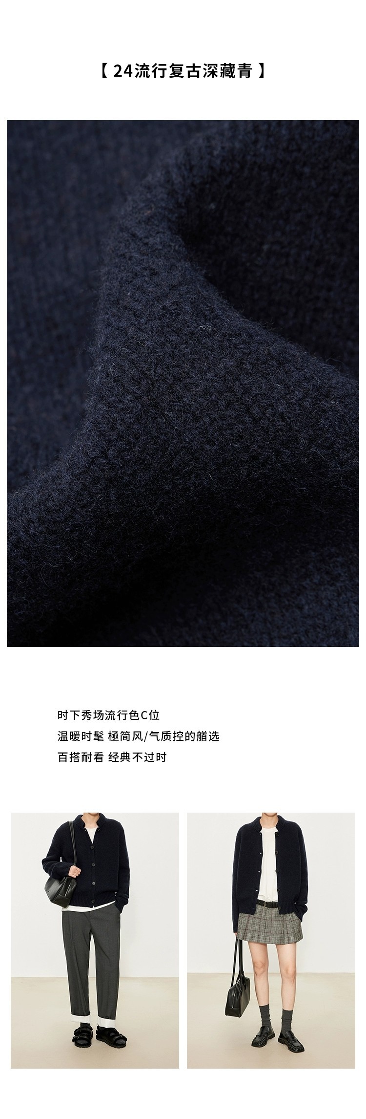 가을과 겨울 2024 새로운 순수 울 하이 엔드 라이트 럭셔리 레트로 칼라 니트 카디건 솔리드 컬러 소프트 왁스 탑스토어 가기