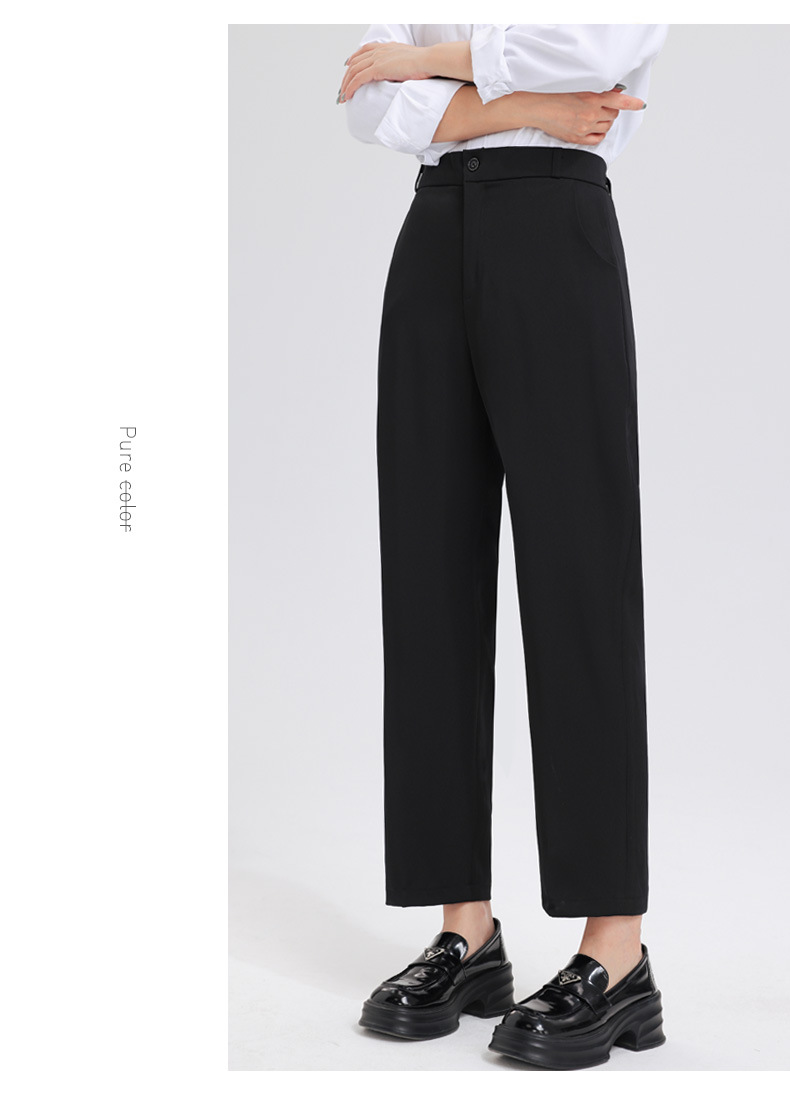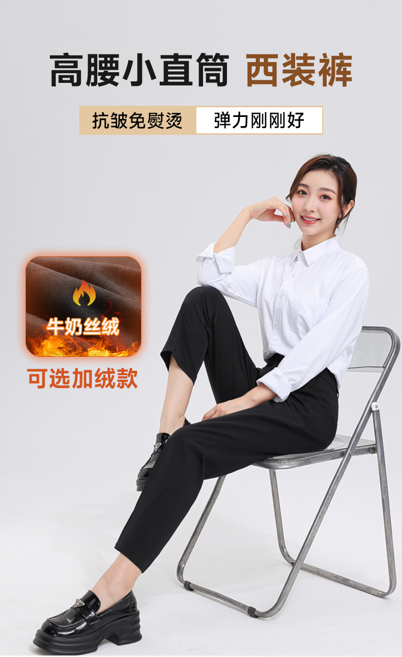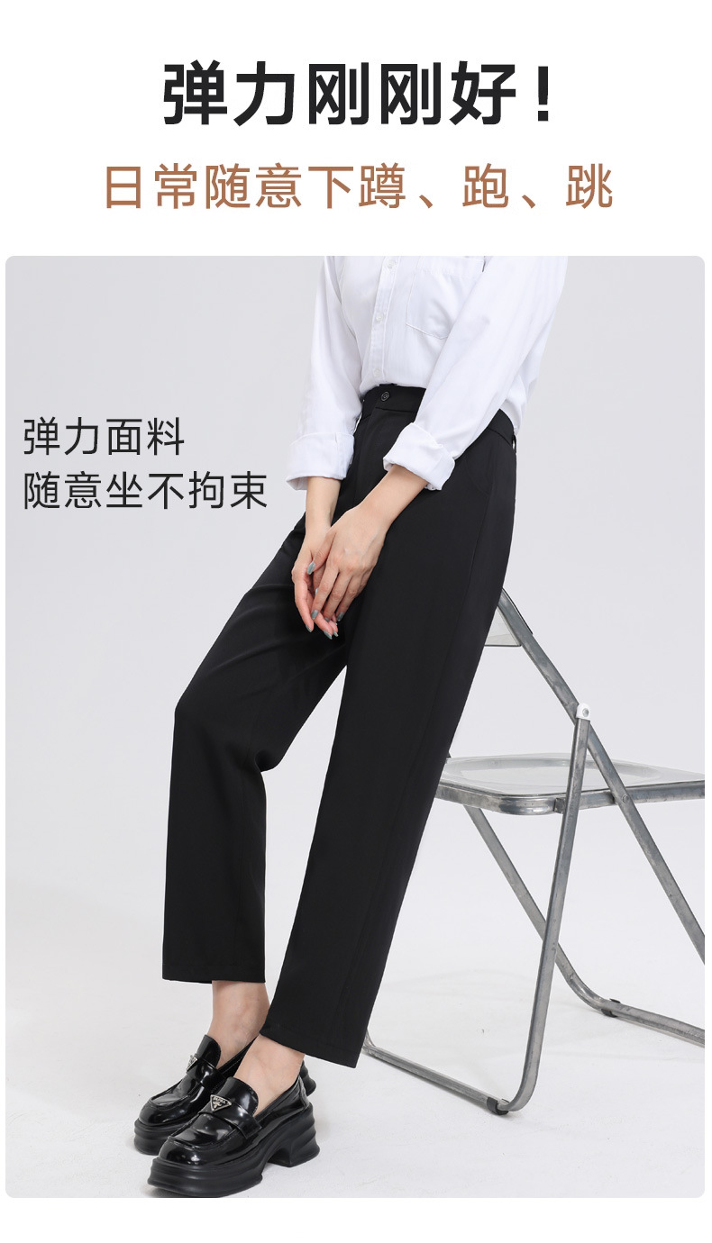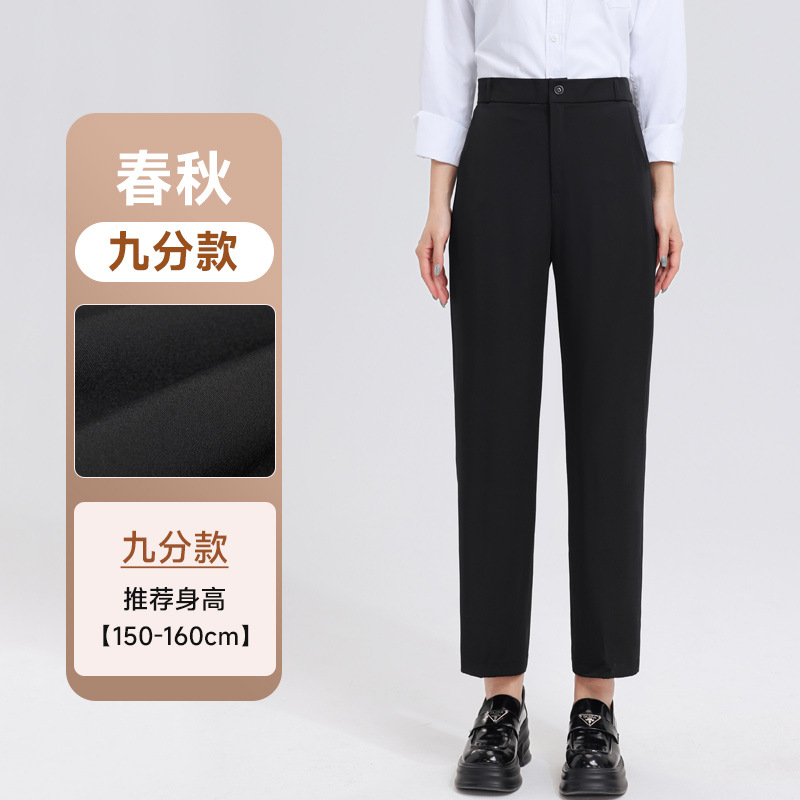 여성용 벨벳 정장 바지, 하이웨이스트 슬림핏 스트레이트 팬츠, 드레이프감 있는 키 작은 분들을 위한 9부 길이, 신축성 있는 블랙 정장 바지스토어 가기