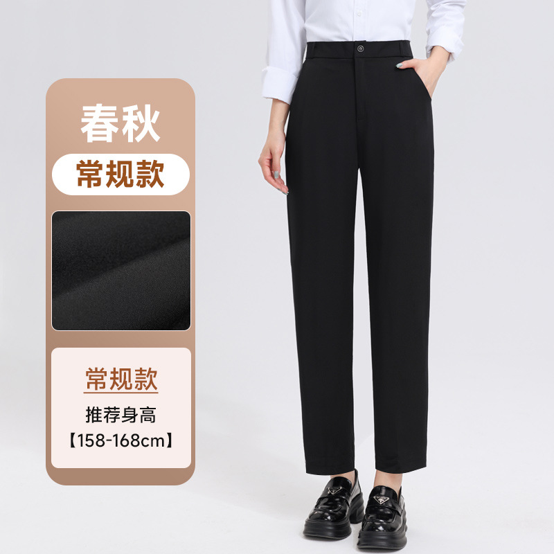여성용 벨벳 정장 바지, 하이웨이스트 슬림핏 스트레이트 팬츠, 드레이프감 있는 키 작은 분들을 위한 9부 길이, 신축성 있는 블랙 정장 바지