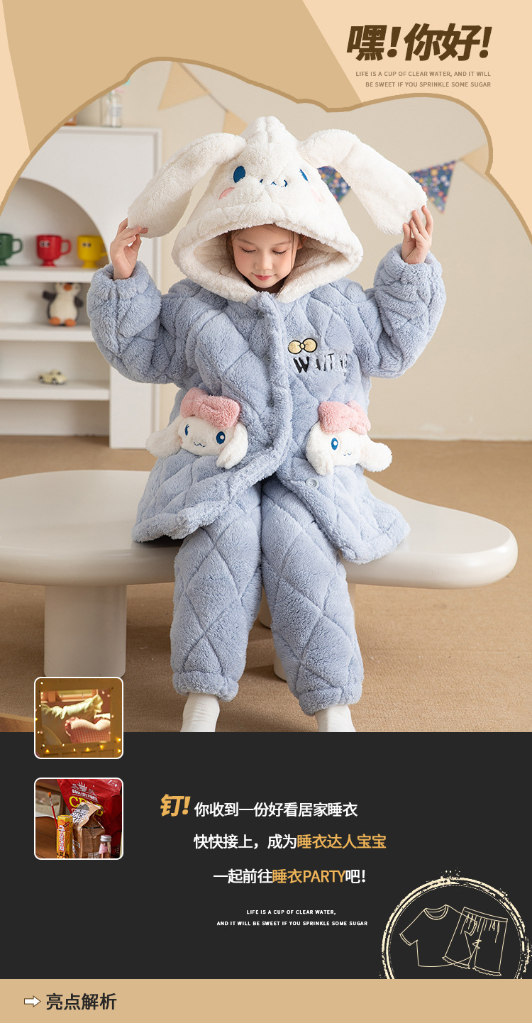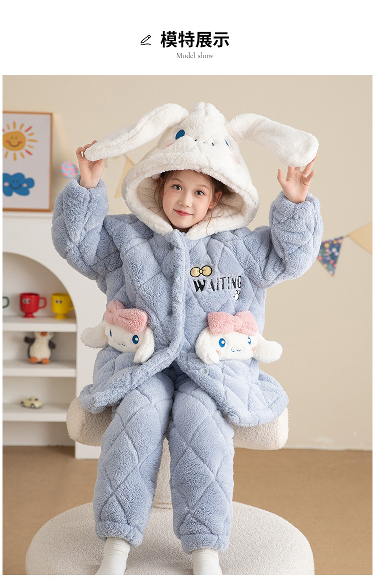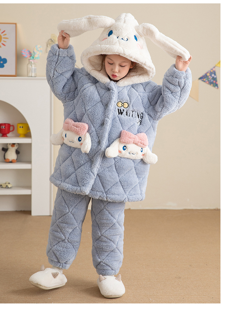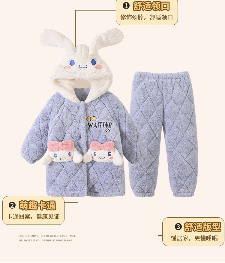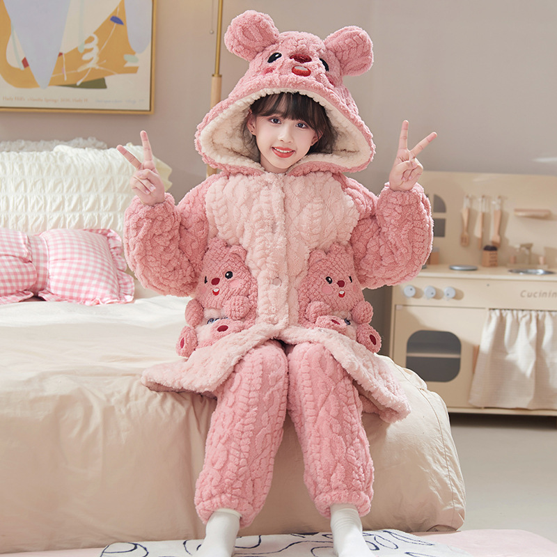 겨울 잠옷 소녀의 산호 양털 3 층 면 두꺼운 스타일 큰 어린이 소녀 만화 귀여운 홈 의류 세트