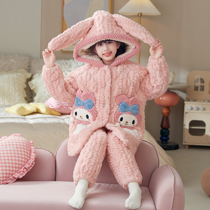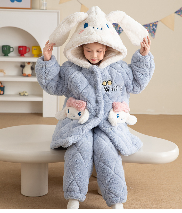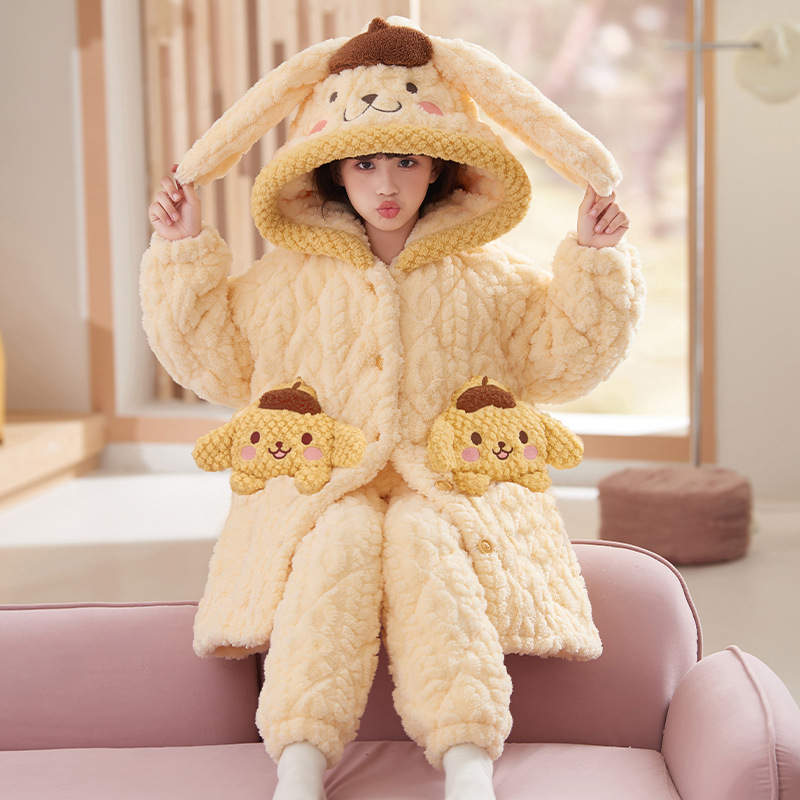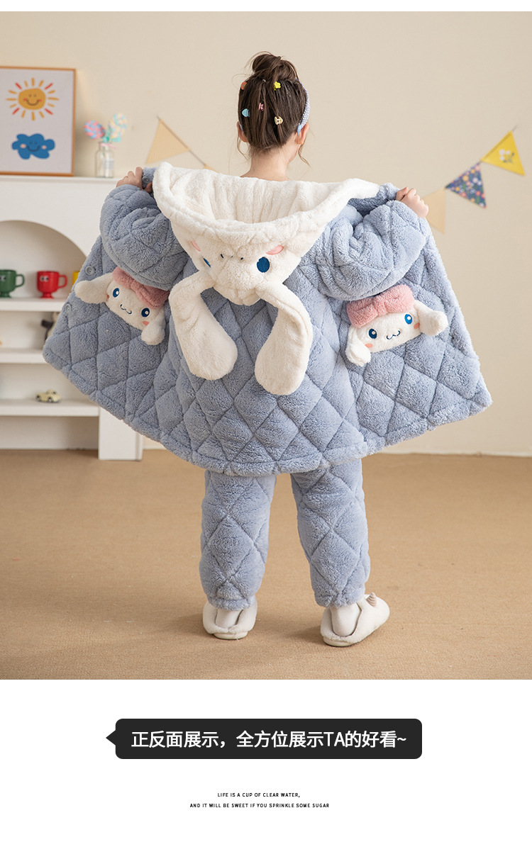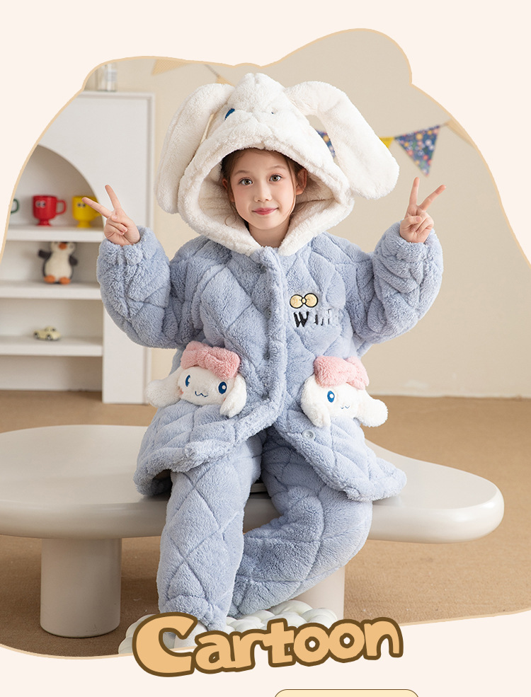 겨울 잠옷 소녀의 산호 양털 3 층 면 두꺼운 스타일 큰 어린이 소녀 만화 귀여운 홈 의류 세트