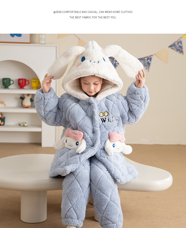 겨울 잠옷 소녀의 산호 양털 3 층 면 두꺼운 스타일 큰 어린이 소녀 만화 귀여운 홈 의류 세트스토어 가기