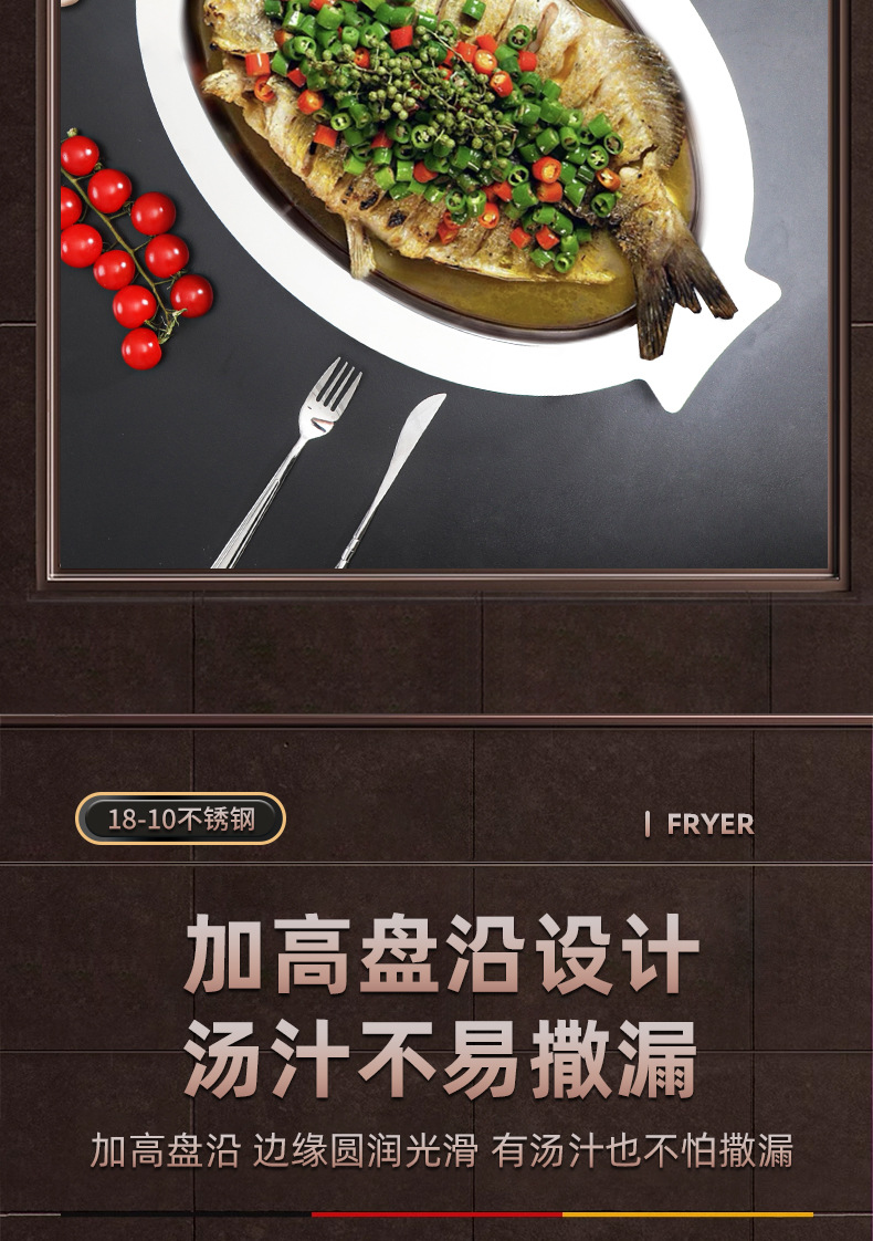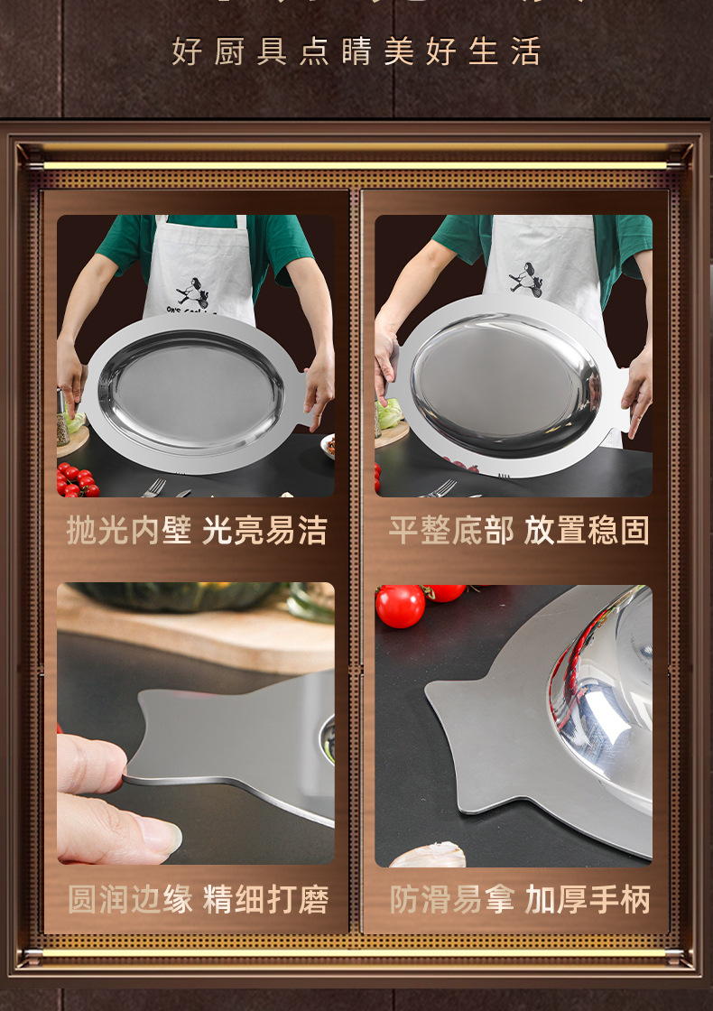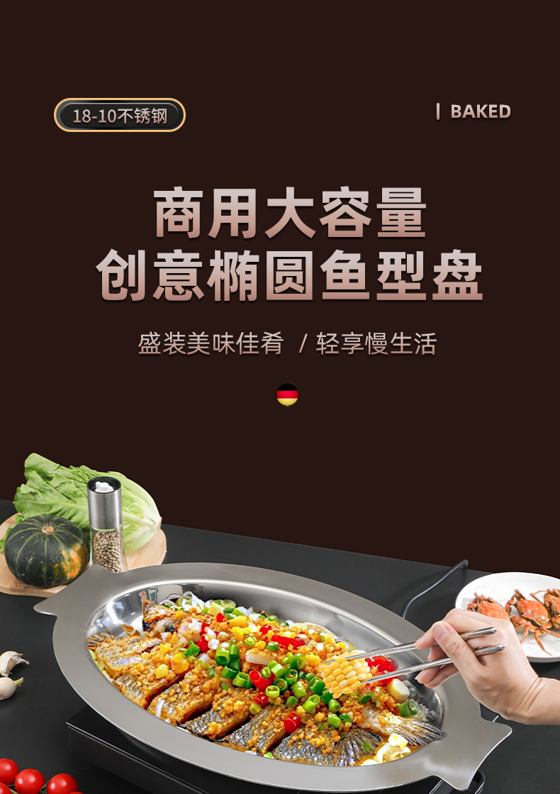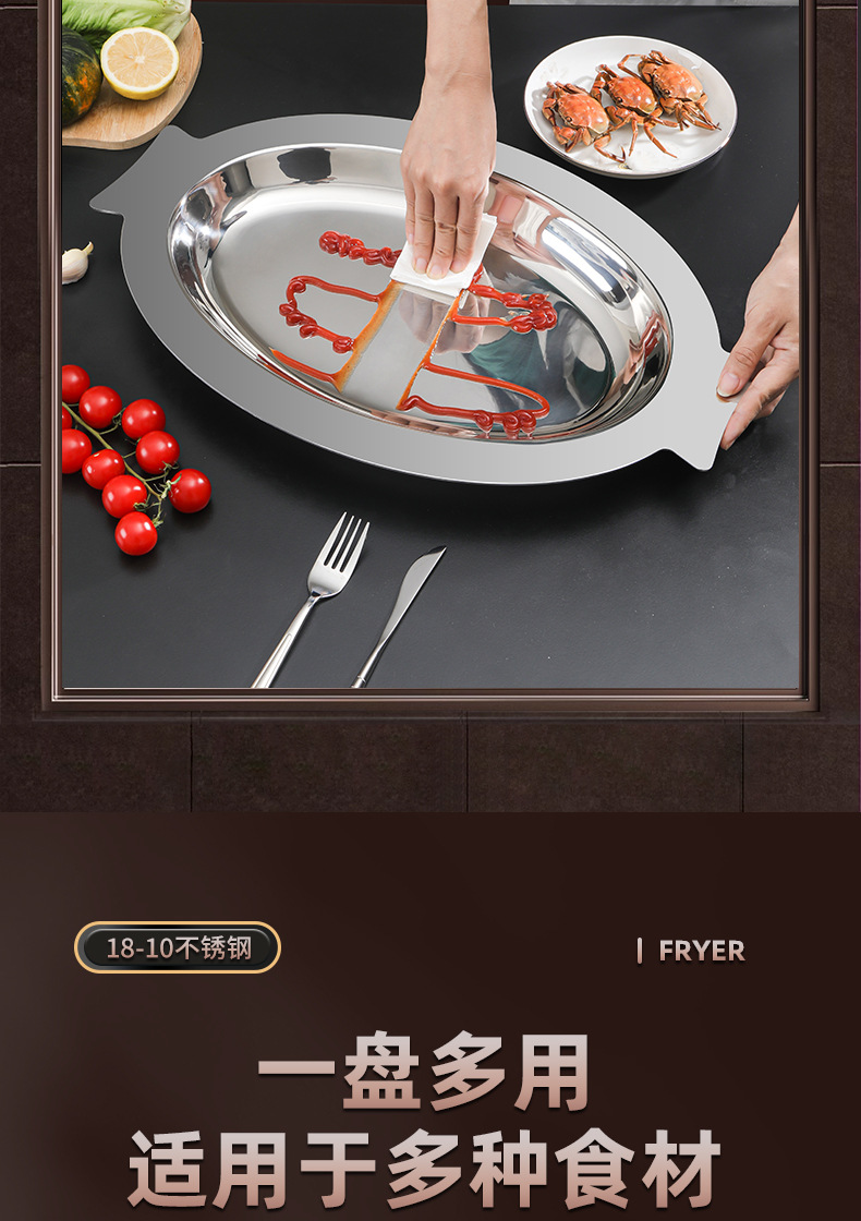 스테인레스 스틸 피쉬 플레이트 316 스테인레스 스틸 가정용 생선 특수 플레이트 타원형 베이커웨어 플레이트 상업용 베이커웨어 플레이트 접시