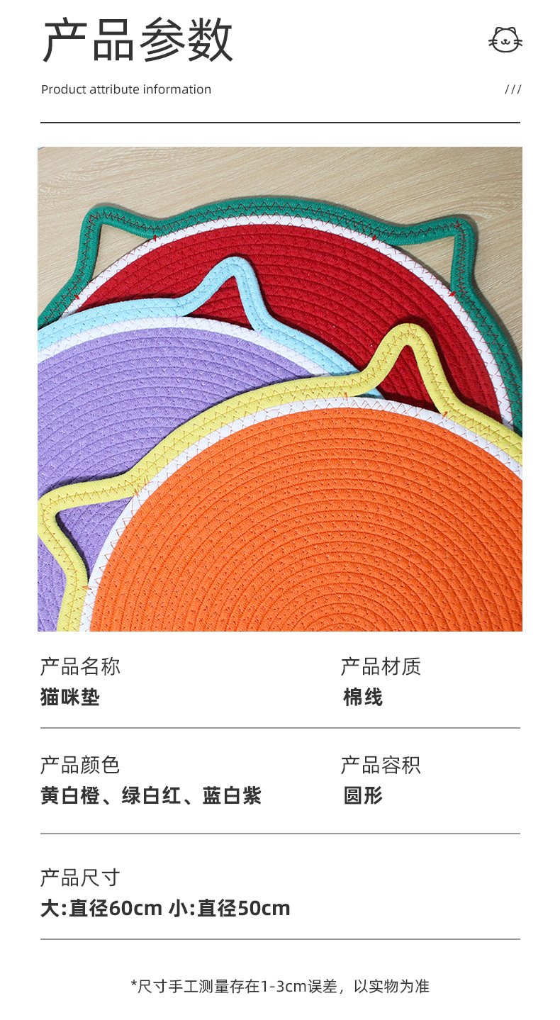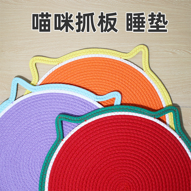 코튼 로프 고양이 스크래치 매트 짠 애완 동물 수면 매트 둥근 고양이 거짓말 매트 사계절 보편적 인 스크래치 방지 내마모성 애완 동물 매트스토어 가기
