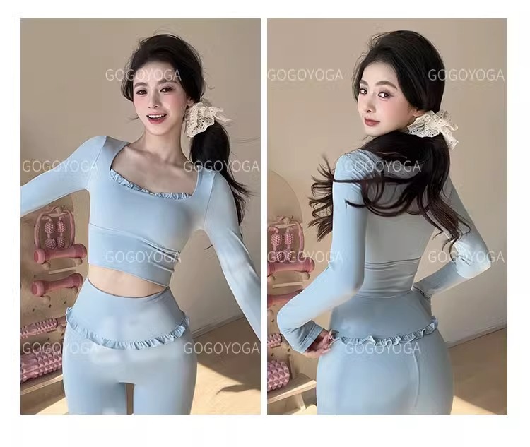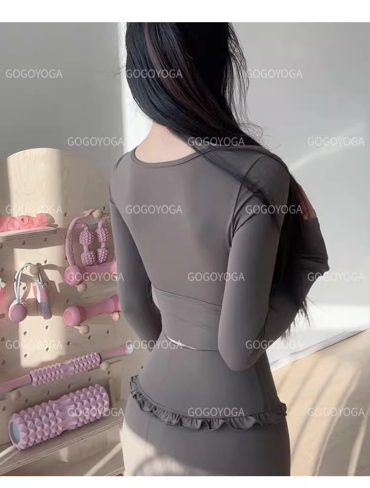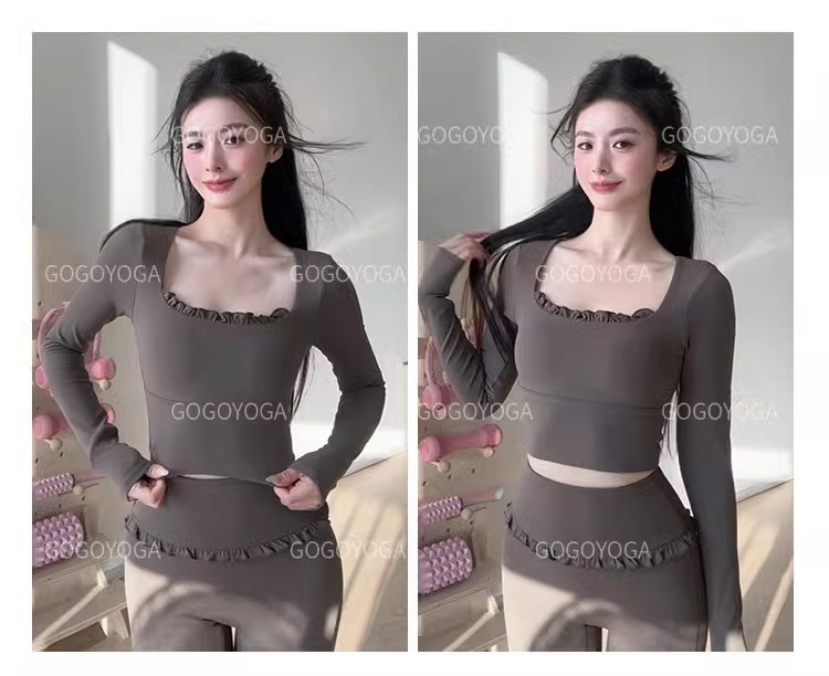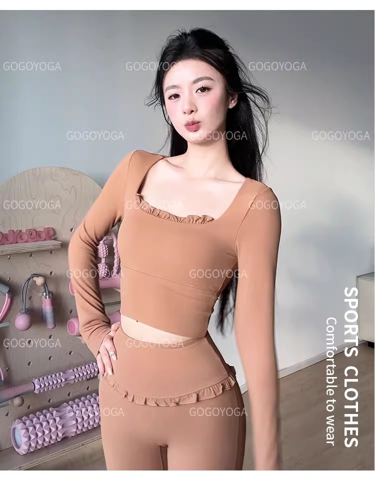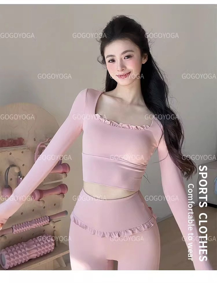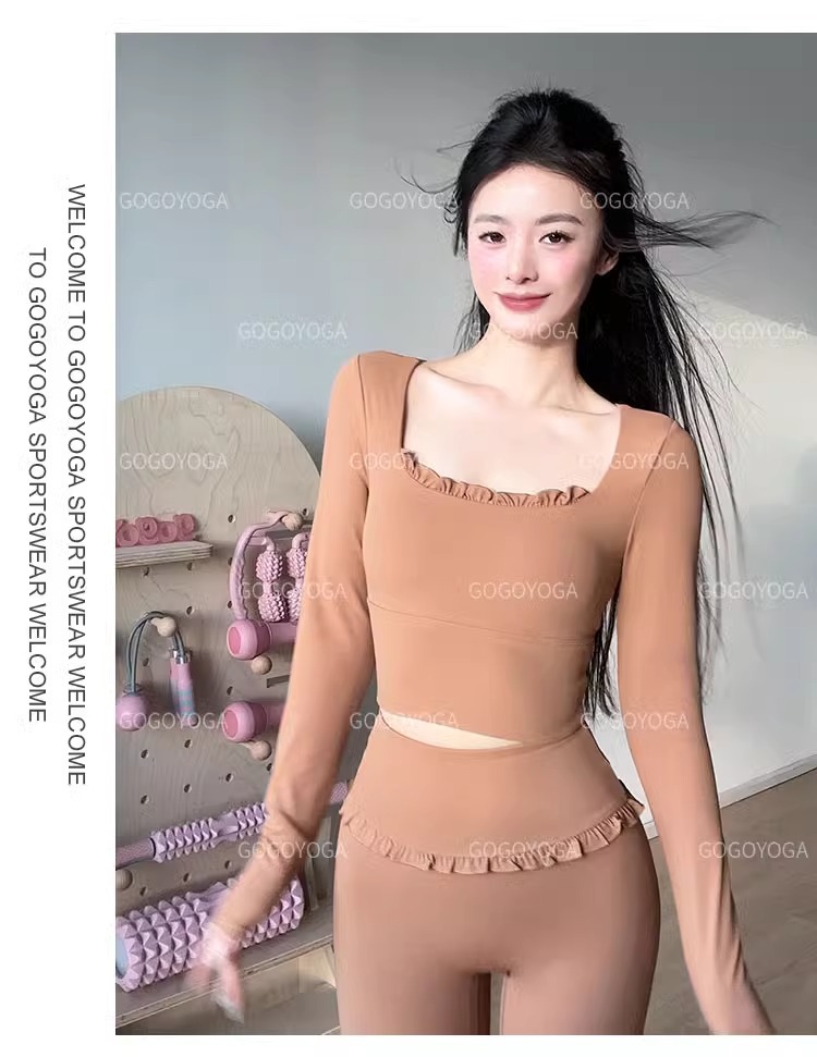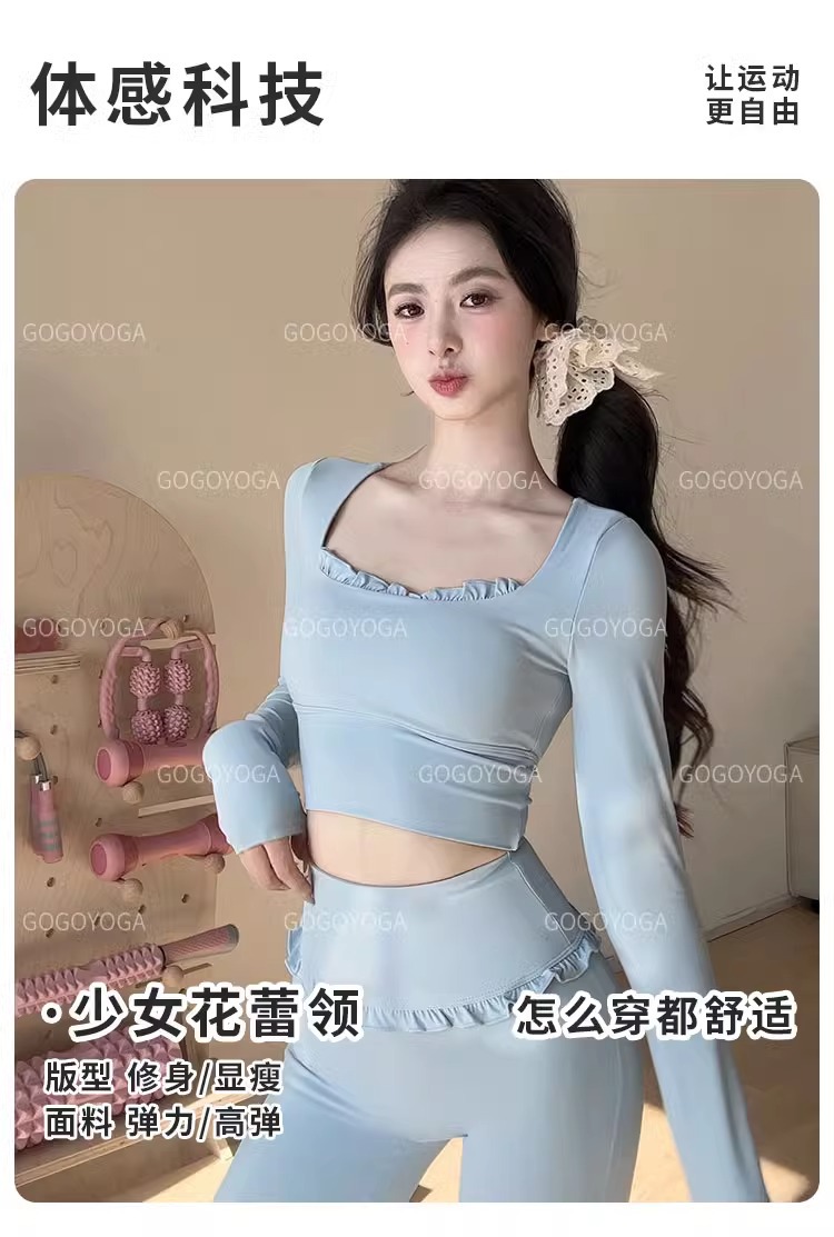 레이스 요가 세트 긴 소매 가을과 겨울 알몸 센스 반 고정 컵 러닝 슬림핏 스포츠 브라 통기성 피트니스 세트 탑스토어 가기