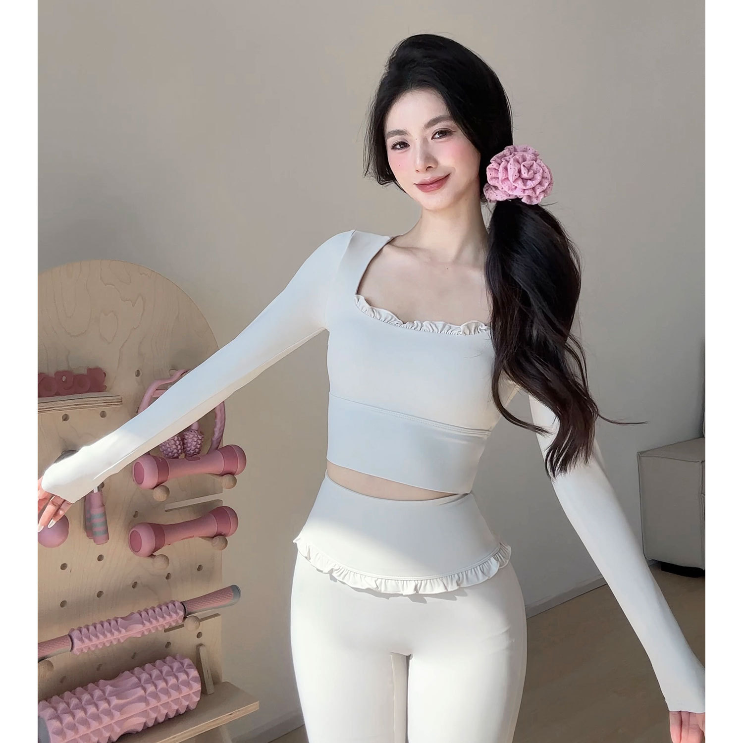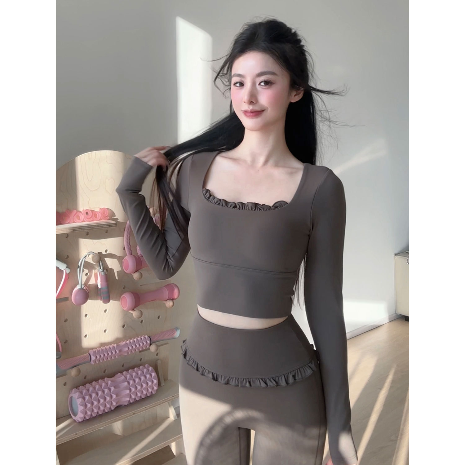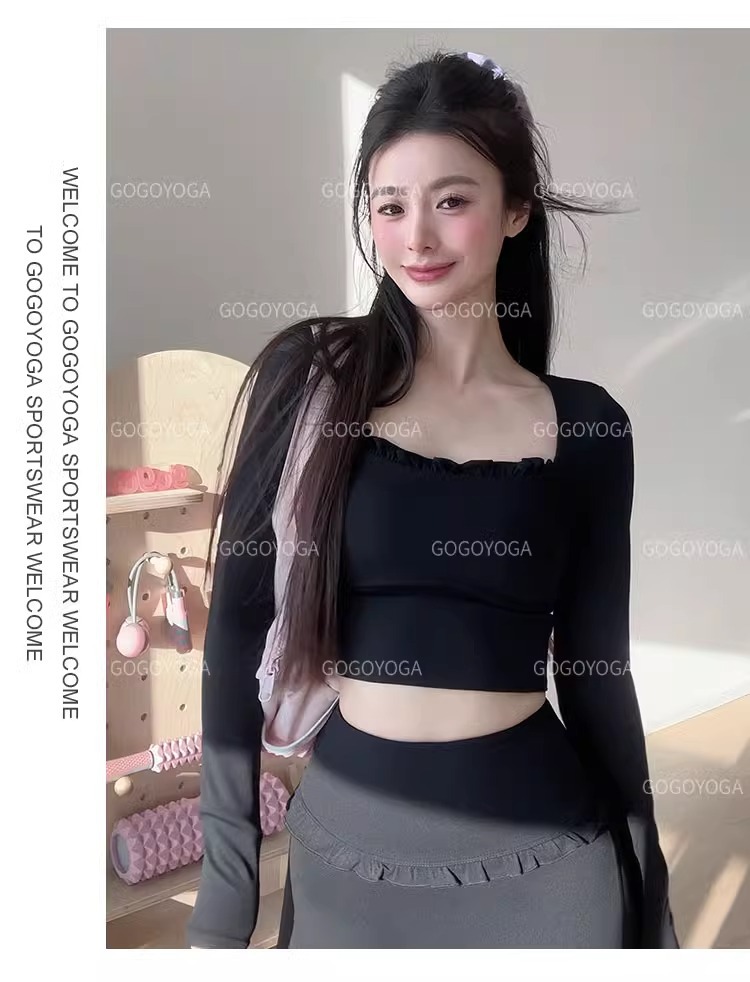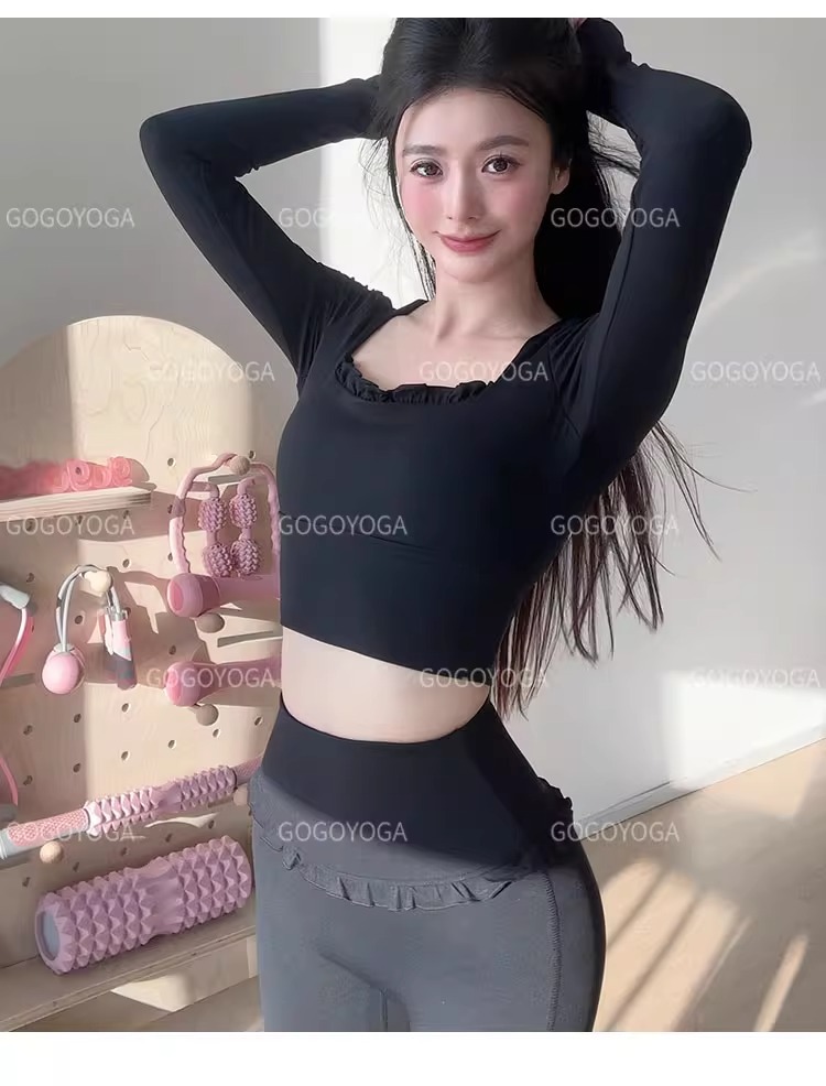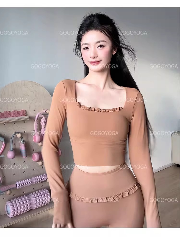 레이스 요가 세트 긴 소매 가을과 겨울 알몸 센스 반 고정 컵 러닝 슬림핏 스포츠 브라 통기성 피트니스 세트 탑스토어 가기