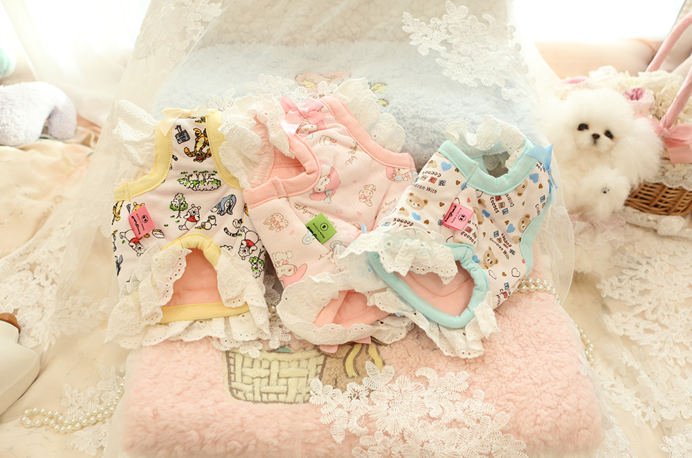 가을과 겨울 새로운 작은 애완 동물 옷 레이스 슬링 코튼 패딩 재킷 고양이 곰 Malzis 개 옷 접힘