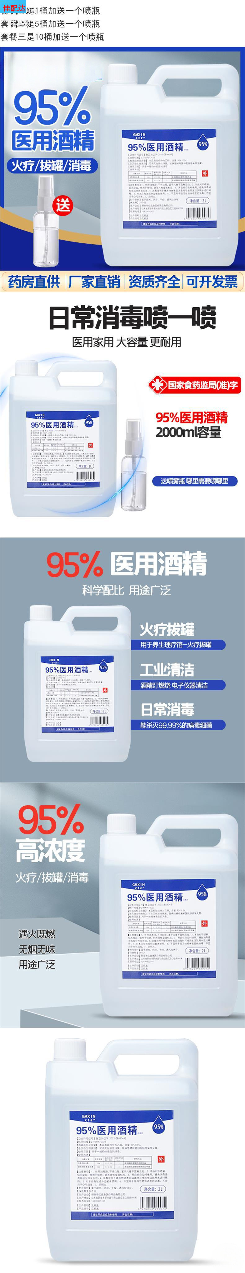 95 도 2L 알코올 에탄올 소독제 알코올 램프 연료 네일 청소 실험 95%