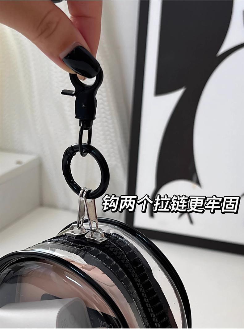 • 블랙*투명/타원형 수납가방 [빈가방 + 대형 열쇠고리]