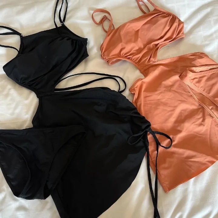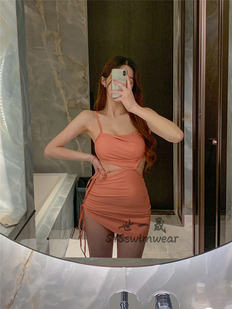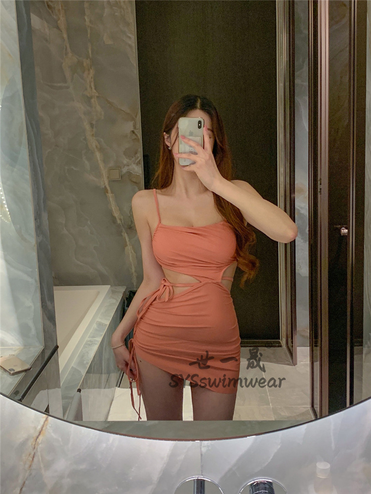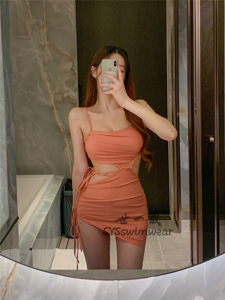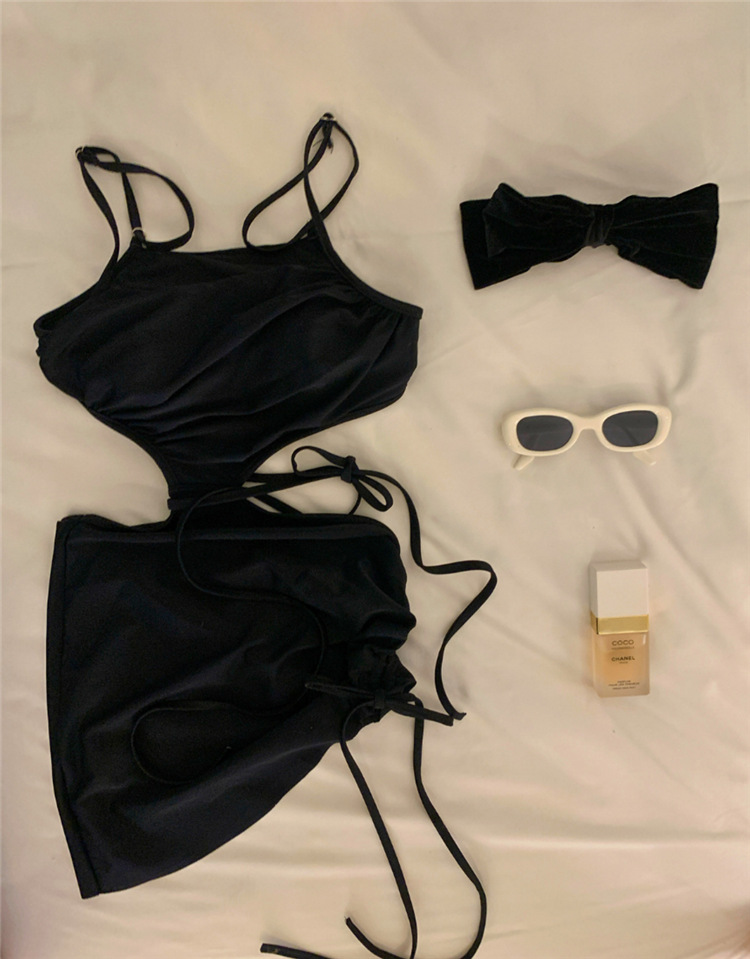 한국 스타일 폭발성 스트랩리스 수영복 여성용 원피스 스커트 하이 엔드 슬림 핏 블랙 섹시 해변 휴일 수영복스토어 가기