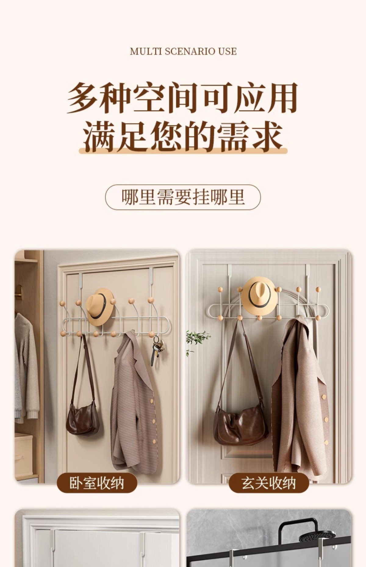 • 높은 간격 [크림 화이트] 더블 레이어 10 후크, 구멍을 뚫을 필요 없음