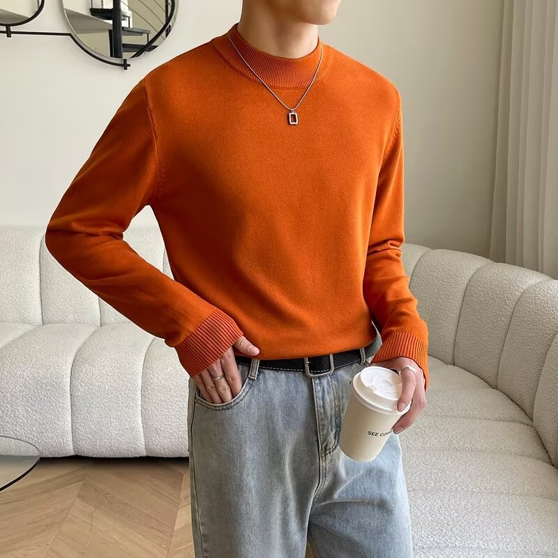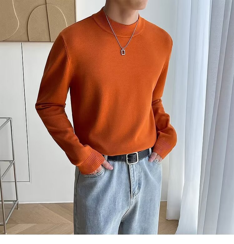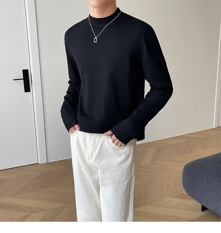 가벼운 성숙한 검은 반 터틀넥 스웨터 남자 겨울 기모 두꺼운 단색베이스 셔츠 스웨터스토어 가기