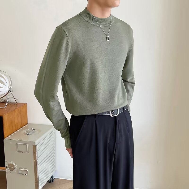 가벼운 성숙한 검은 반 터틀넥 스웨터 남자 겨울 기모 두꺼운 단색베이스 셔츠 스웨터