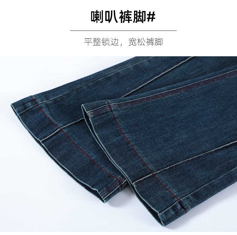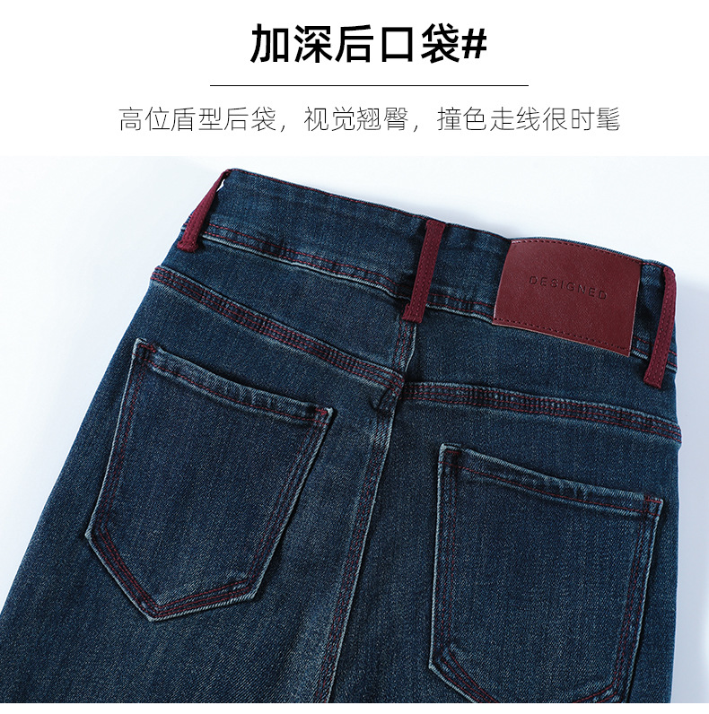 뜨거운 소녀 높은 허리 파 바지 청바지 여성 기모 바지 가을과 겨울 대비 색상 틈새 슬림-적합 새로운 스타일 스트레치스토어 가기