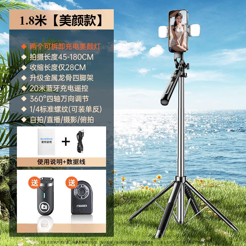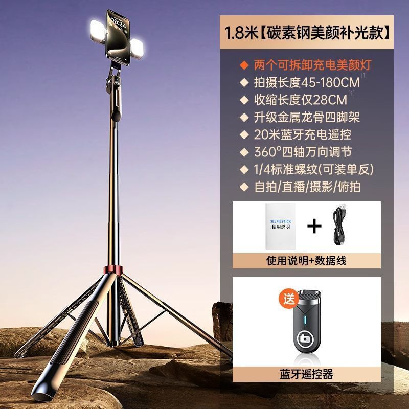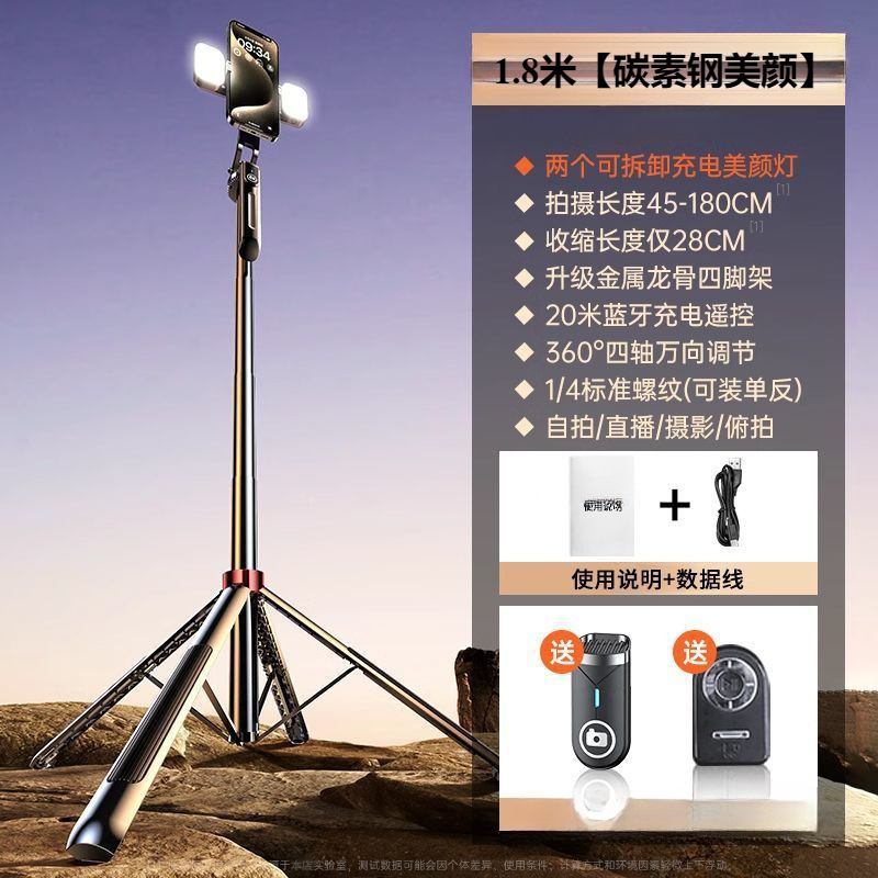 • 알루미늄 합금 모델 [손떨림 방지 그립/충전 블루투스 리모콘 - 1.8m [강화 쿼드포드] 듀얼 뷰티 필 라이트/Douyin 리모콘