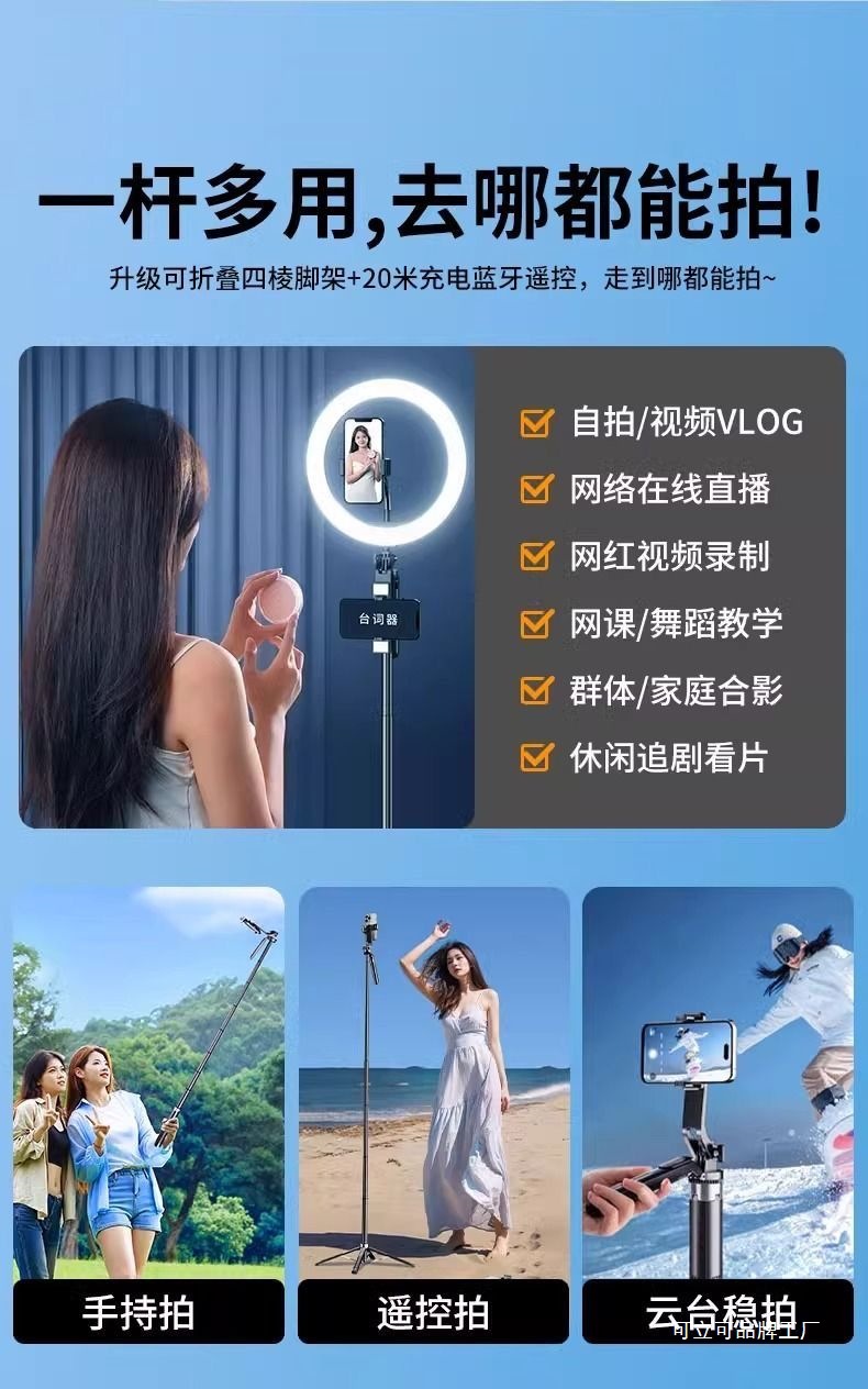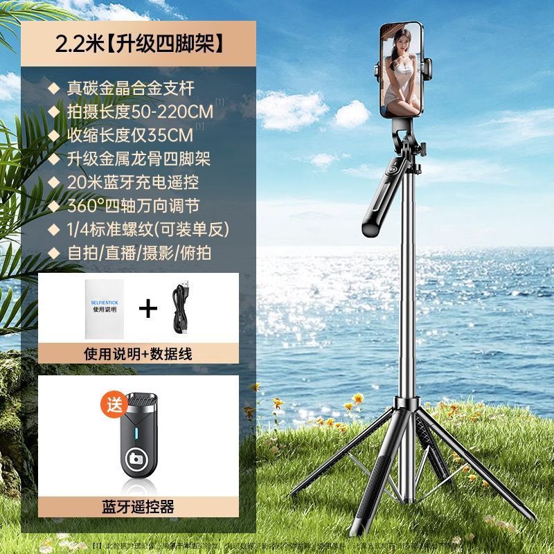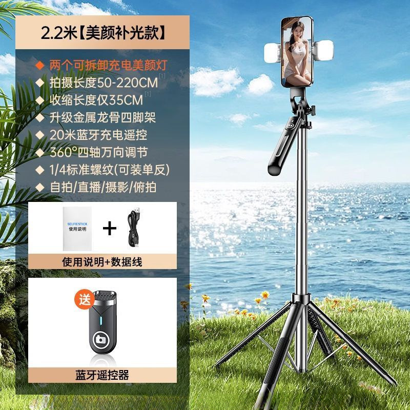 • 알루미늄 합금 모델 [손떨림 방지 그립/충전 블루투스 리모콘 - 2.2m [강화 쿼드포드] 듀얼 뷰티 필 라이트/Douyin 리모콘
