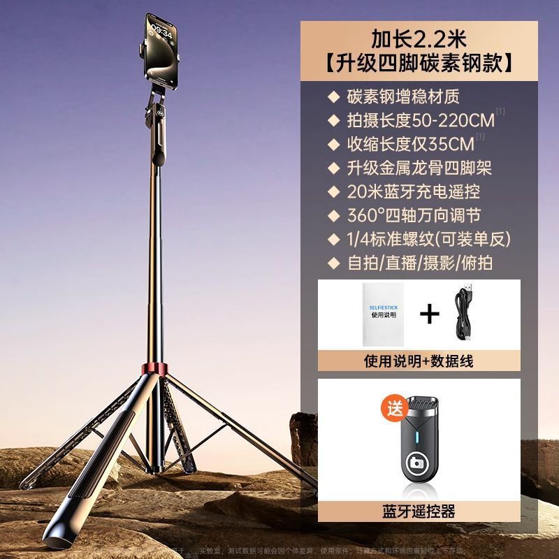 • 스테인리스 모델 [손떨림 방지 그립/충전 블루투스 리모콘] - 2.2m [강화 쿼드포드] 듀얼 뷰티 필라이트/Douyin 리모콘