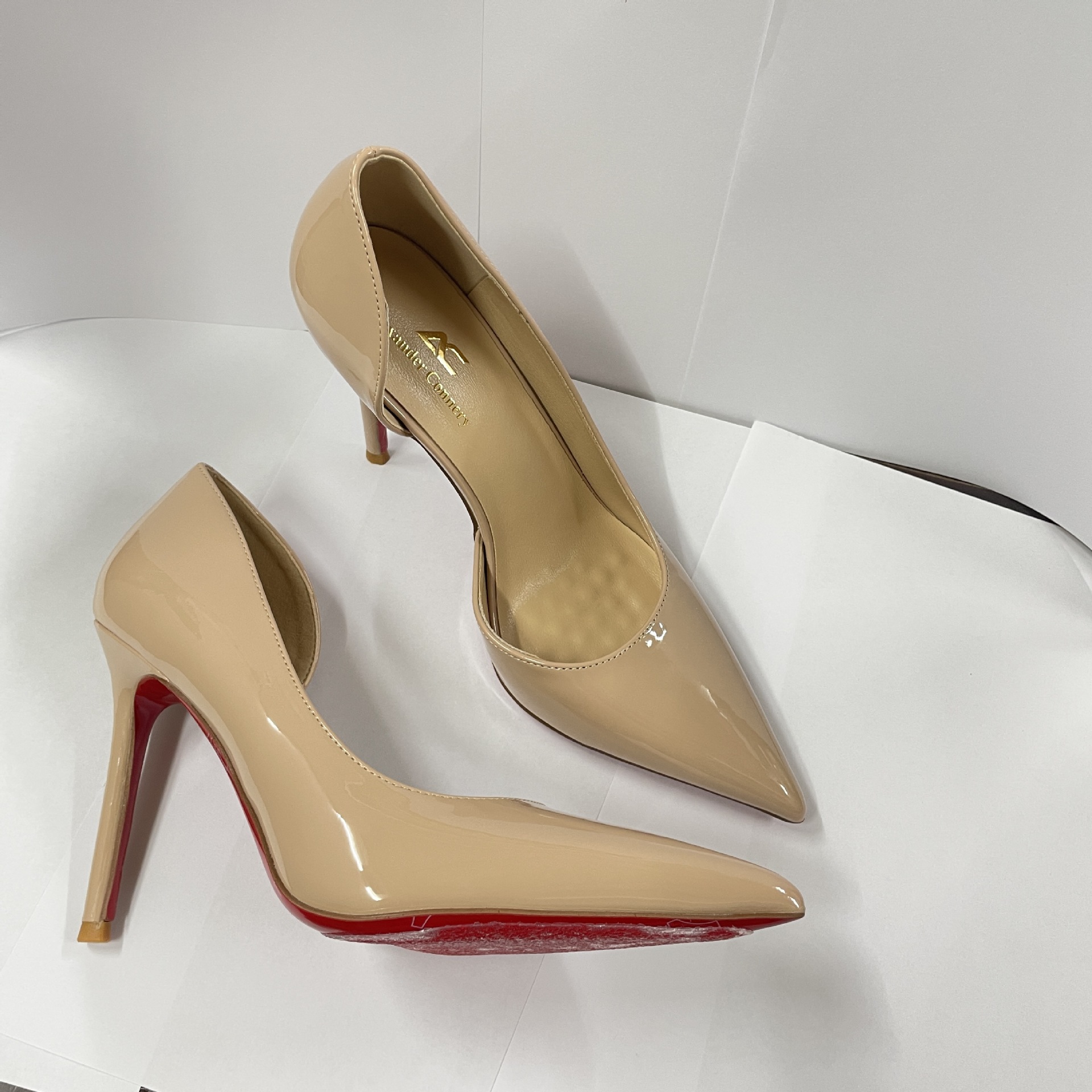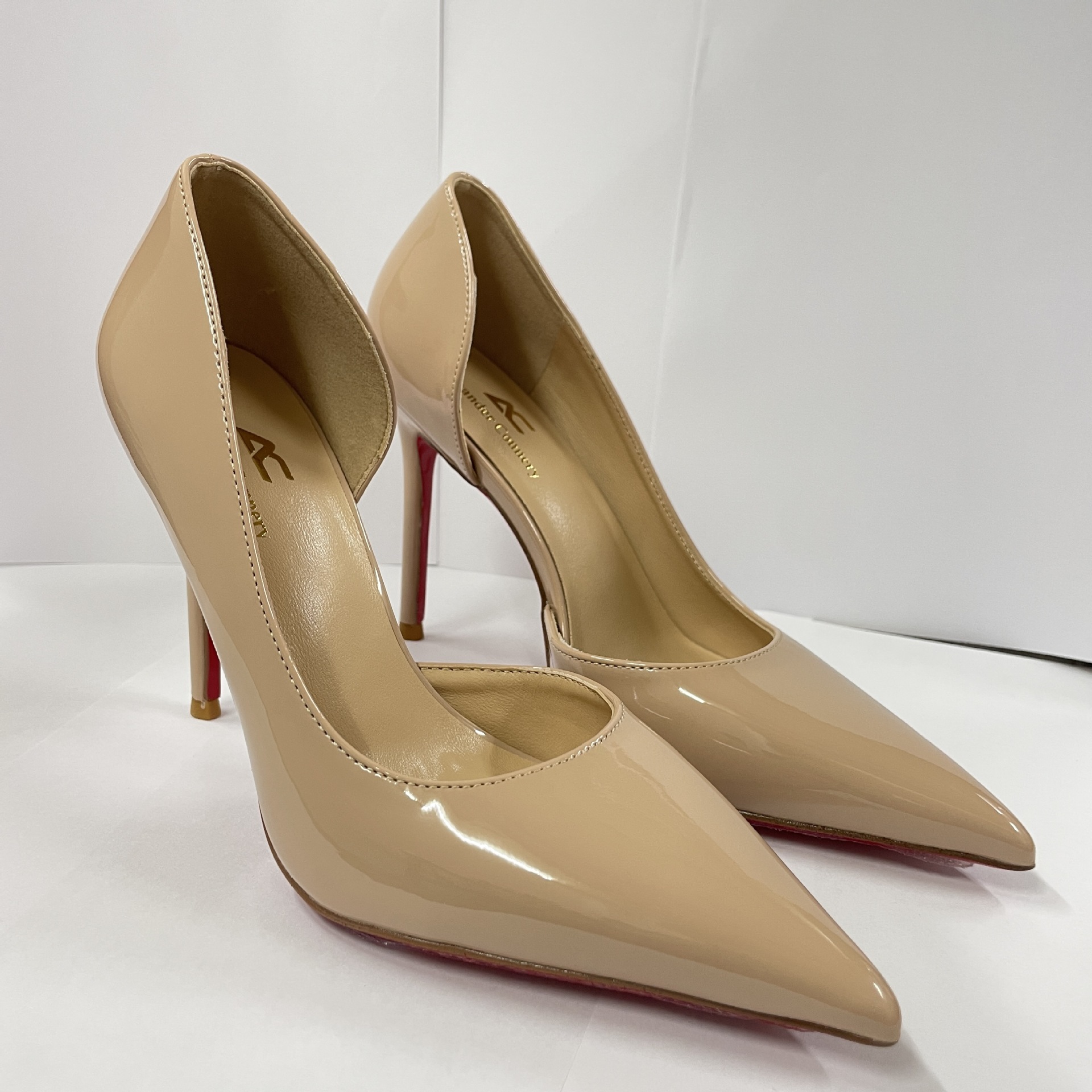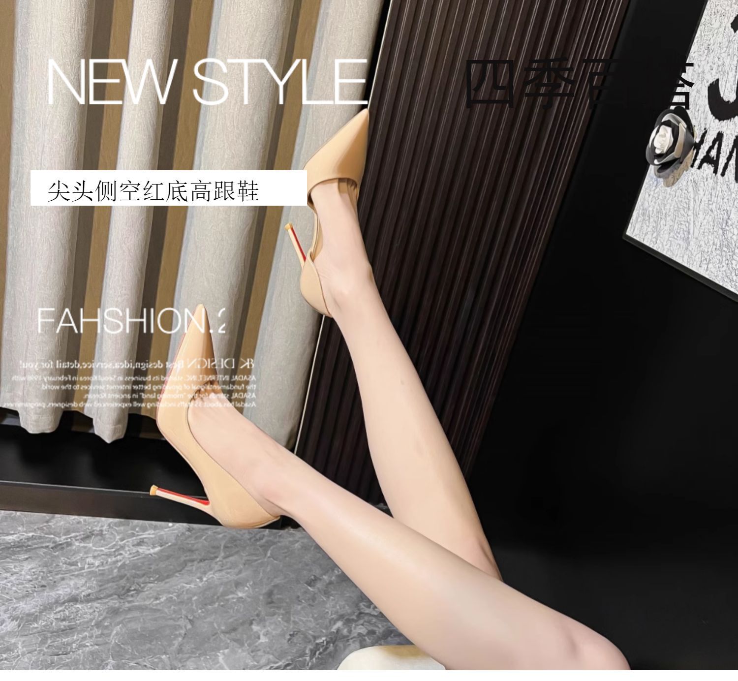 레드 바닥 하이힐 여성용 포인티드 토 스틸레토 사이드컷 하이힐, 발이 편한 우아한 포인티드 토 누드 컬러 고급스러운 싱글 슈즈