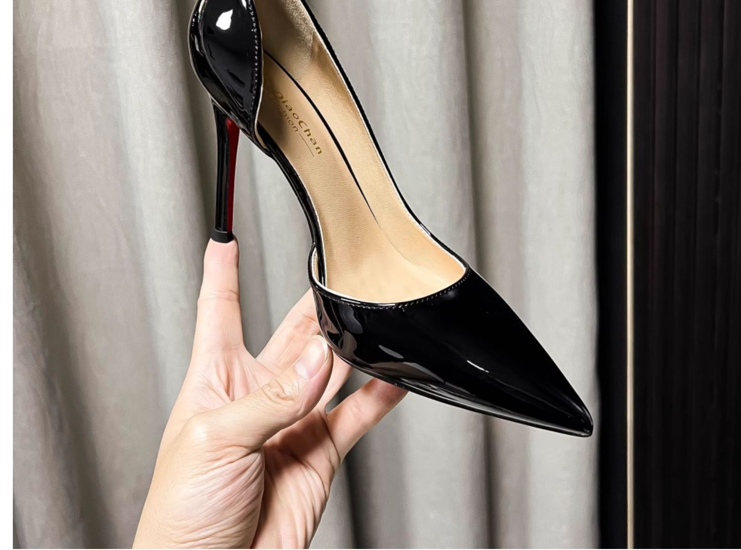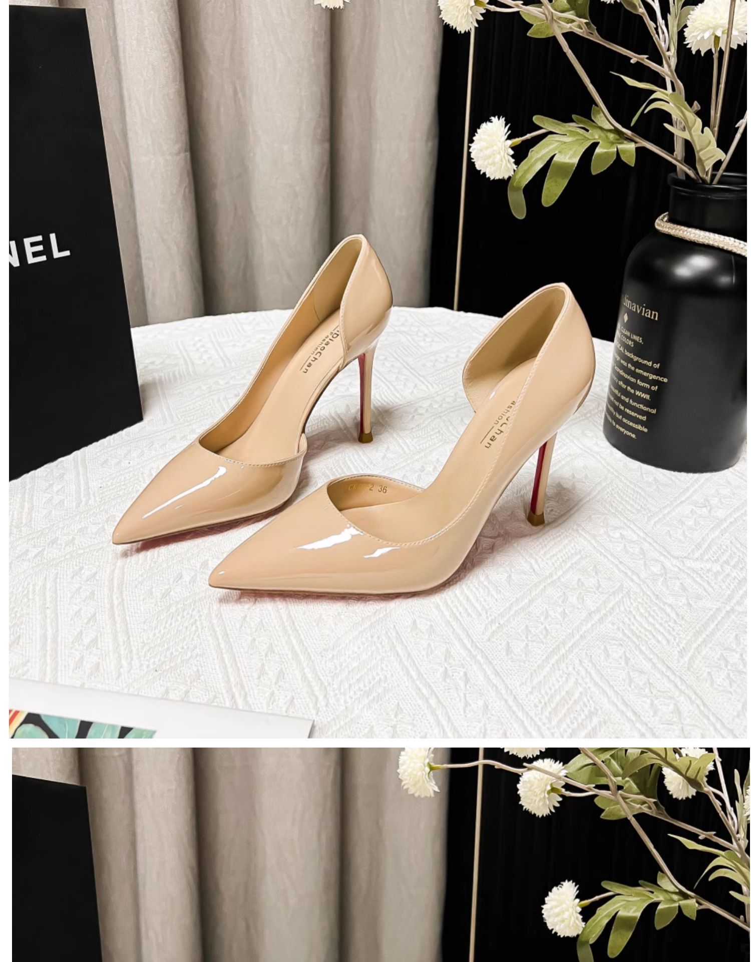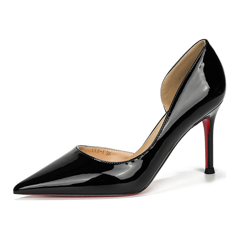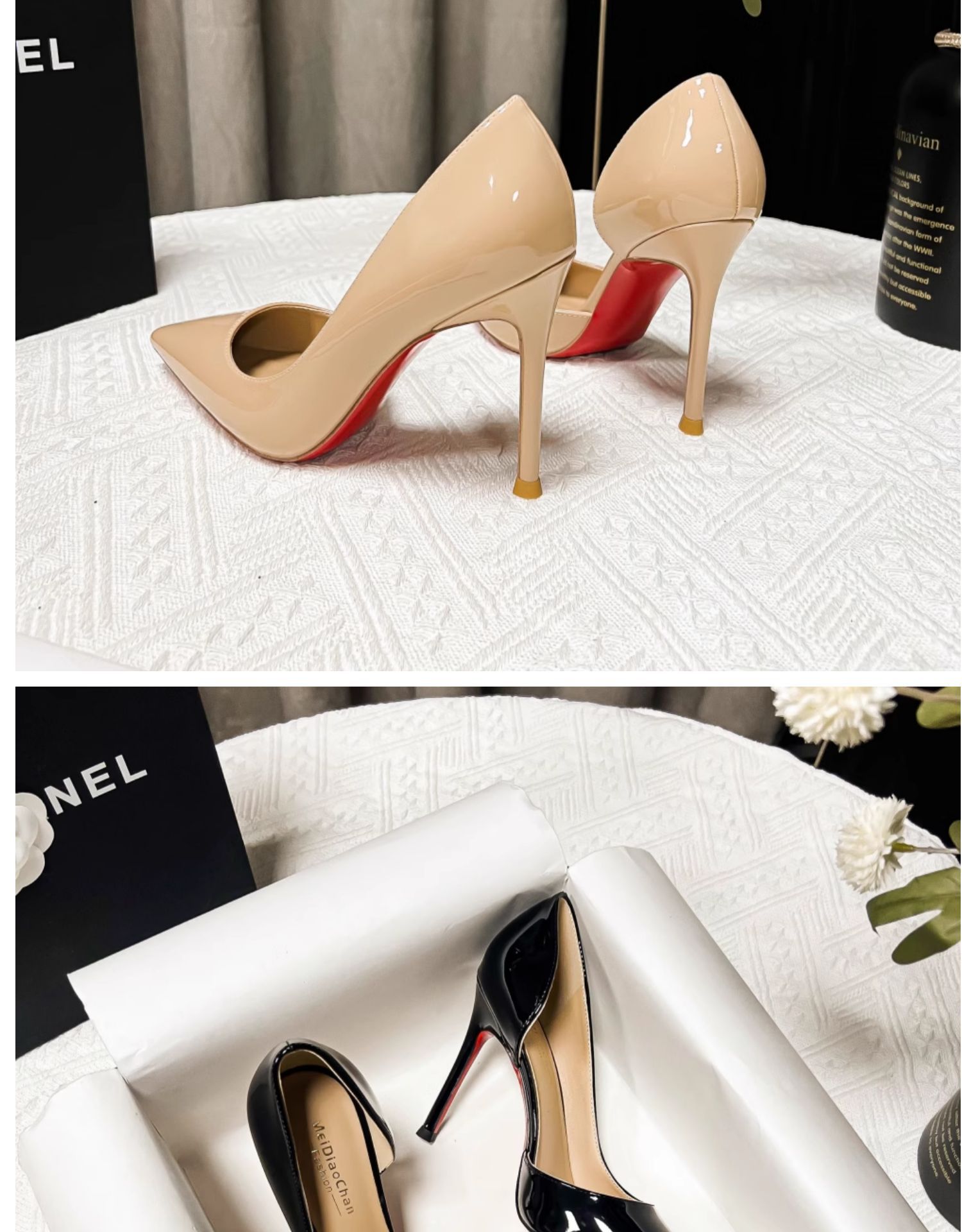 레드 바닥 하이힐 여성용 포인티드 토 스틸레토 사이드컷 하이힐, 발이 편한 우아한 포인티드 토 누드 컬러 고급스러운 싱글 슈즈스토어 가기