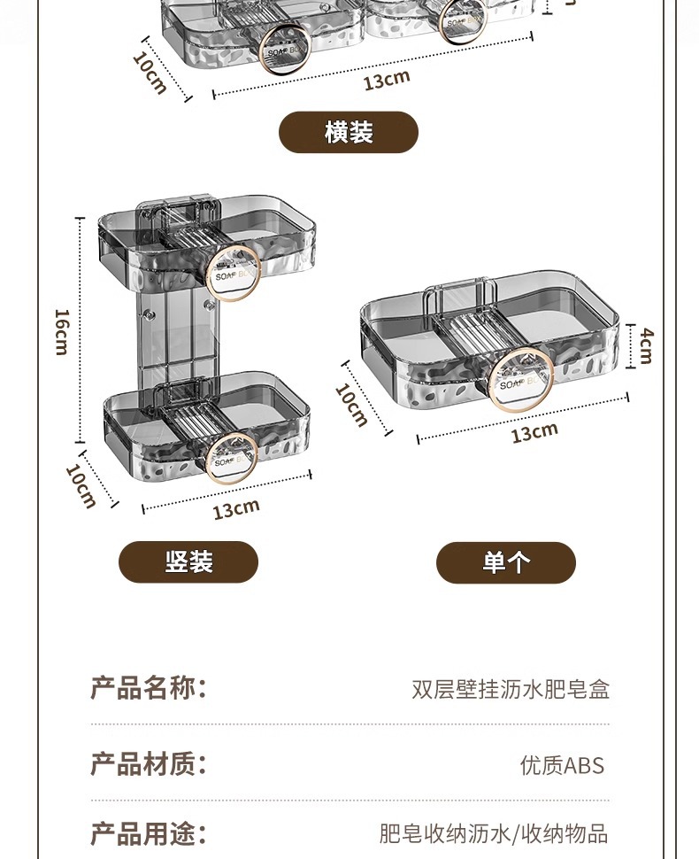 가정용 고급 배수 비누 랙 비누 상자 욕실 벽걸이 형 이중층 비누 상자 비 천공 보관 랙스토어 가기