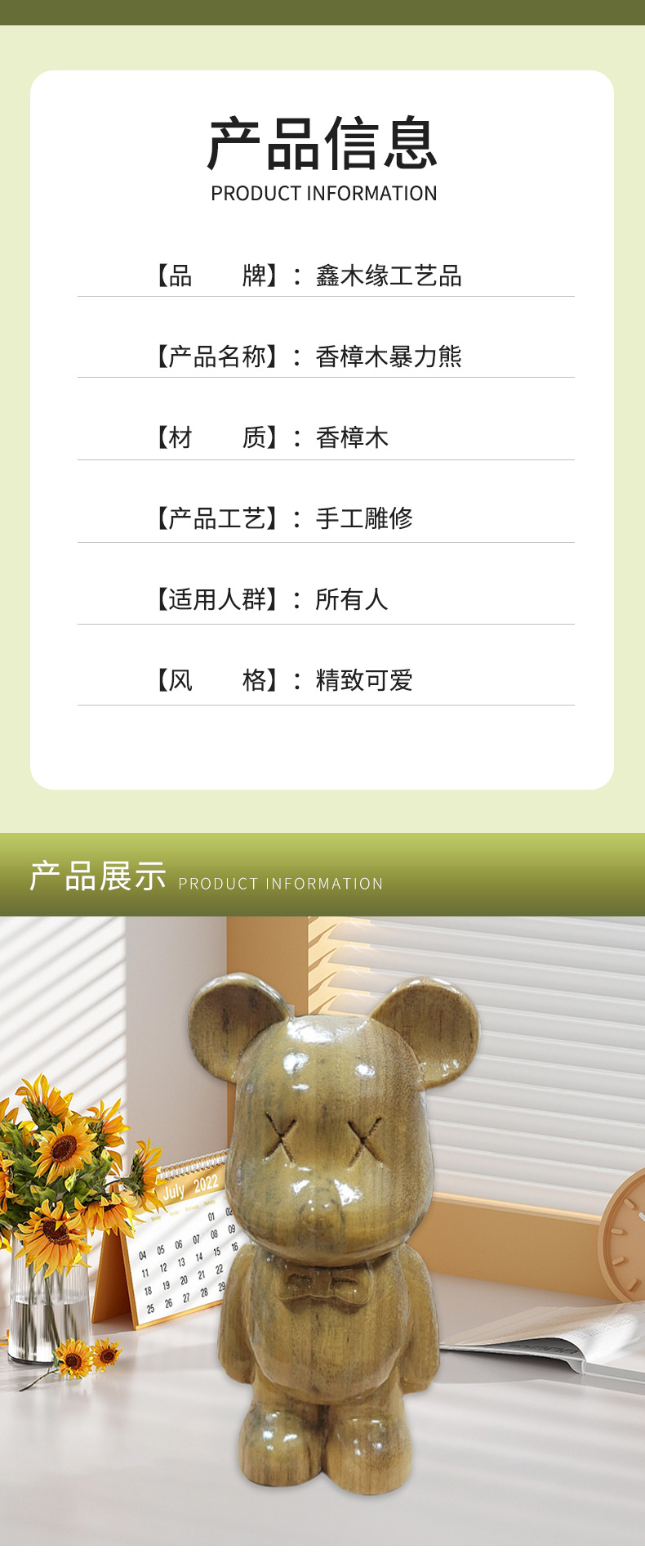 천연 침향나무 만화 소품 폭력적인 곰 가정 장식품 사무실 책상 장식품 공장 직판 목재스토어 가기