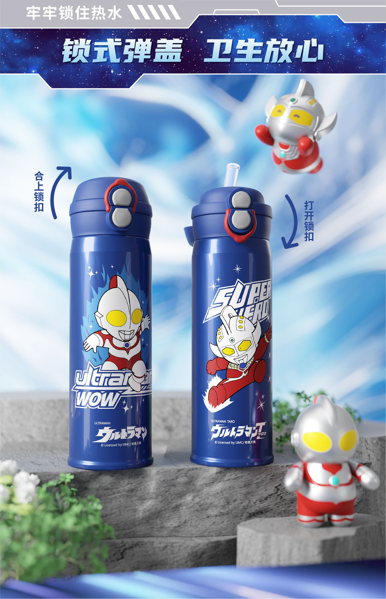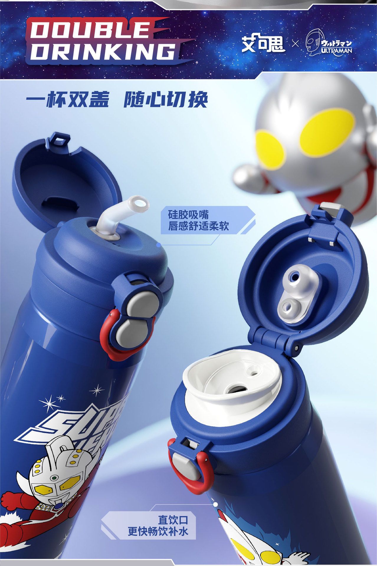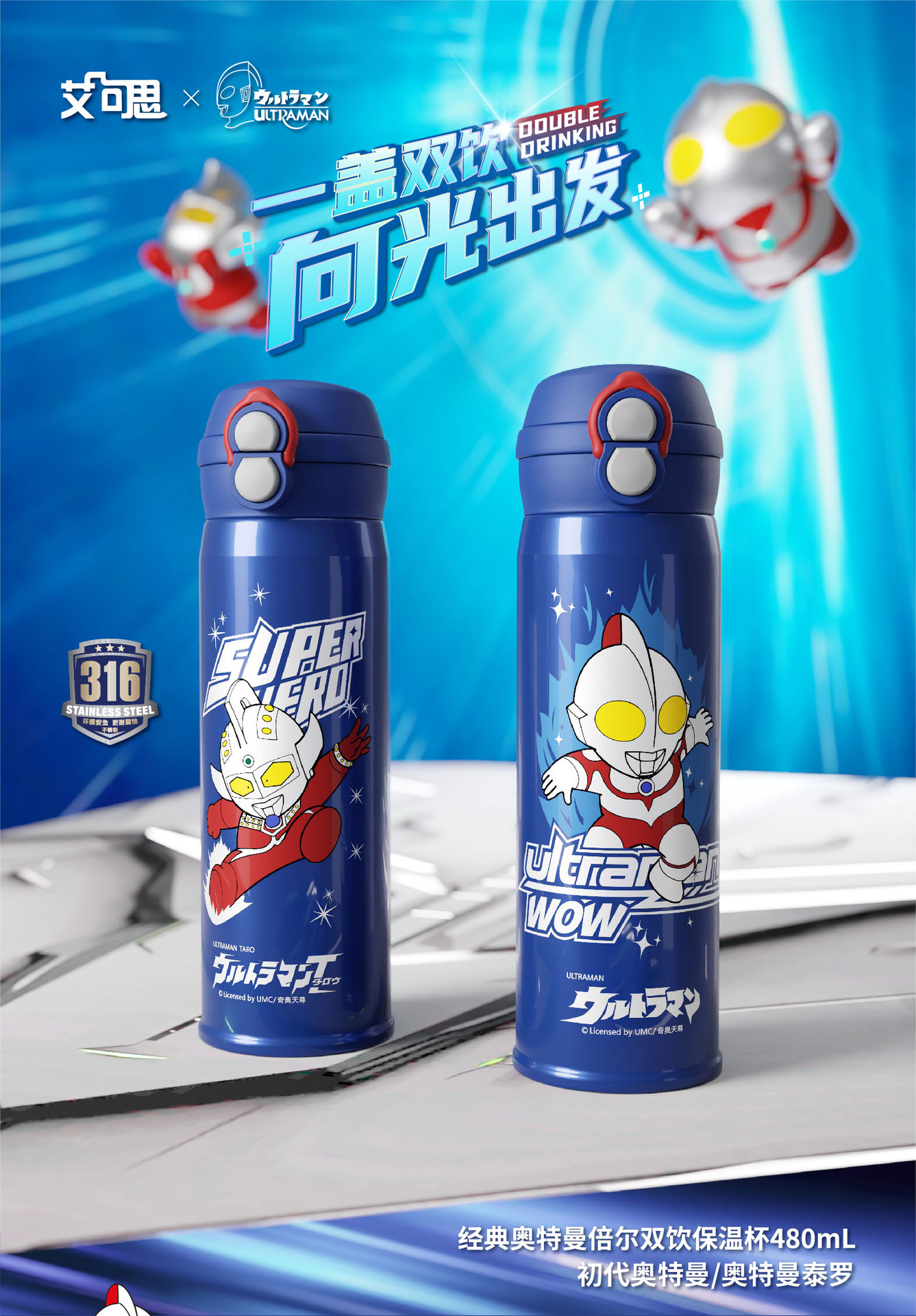 새로운 울트라 맨 보온병 컵 원 뚜껑 더블 드링크 베일 어린이 학생 스트레이트 음료 워터 컵 휴대용 남녀스토어 가기