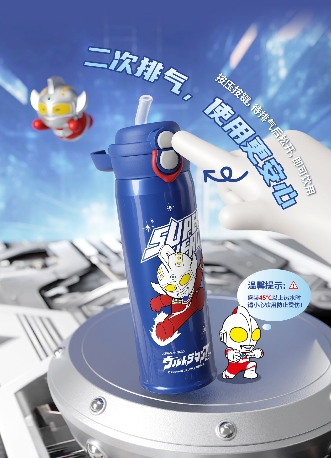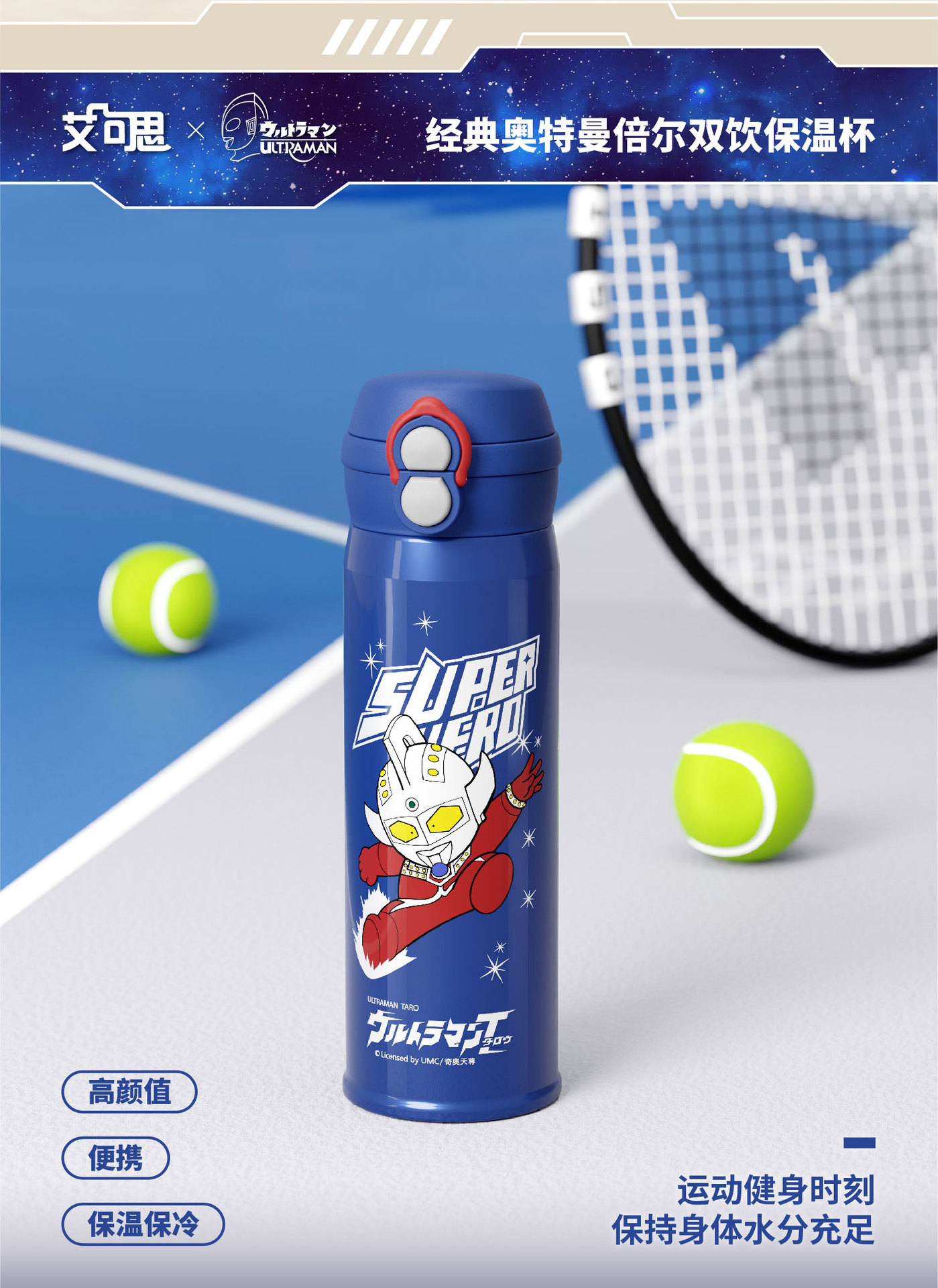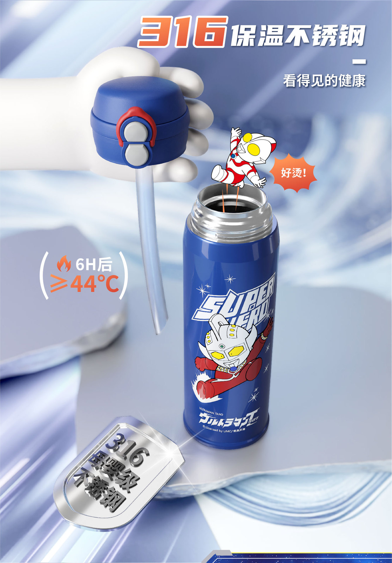새로운 울트라 맨 보온병 컵 원 뚜껑 더블 드링크 베일 어린이 학생 스트레이트 음료 워터 컵 휴대용 남녀스토어 가기