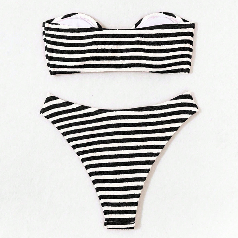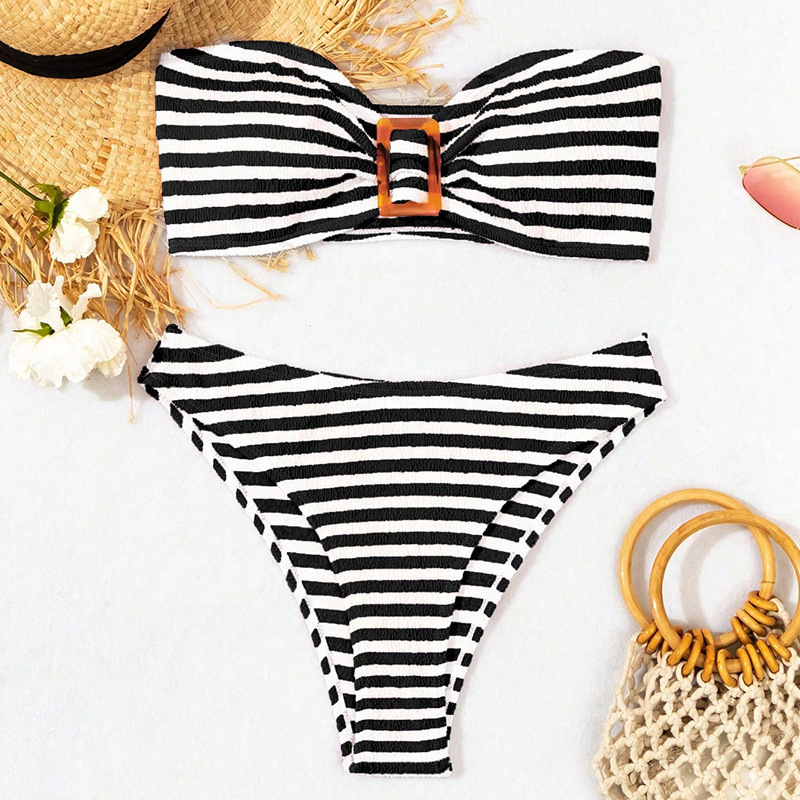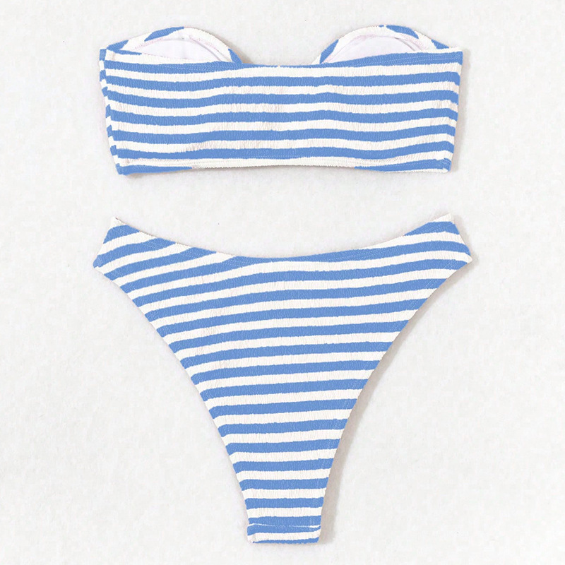 2025 새로운 AliExpress 유럽과 미국의 프린트 스트라이프 섹시한 비치 비키니 삼각형 온천 스플릿 수영복 여성용