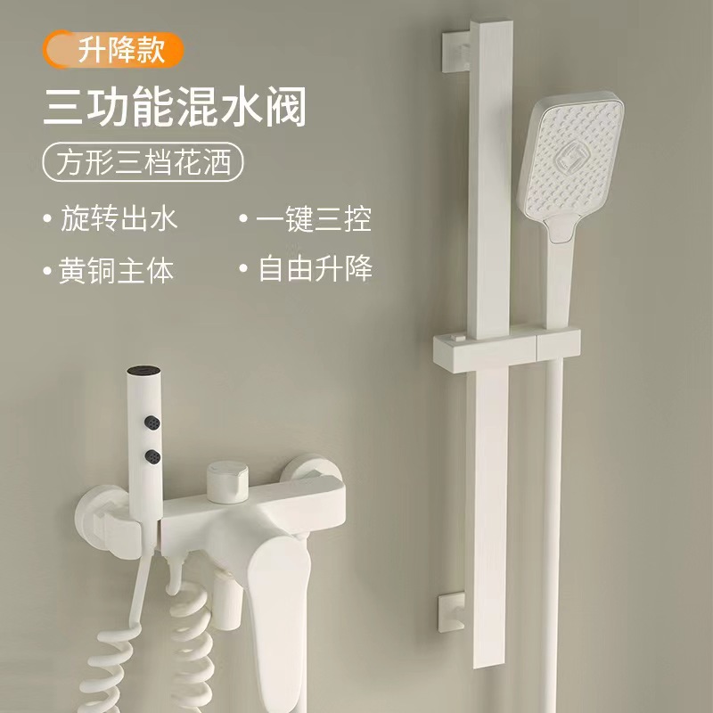 • 유백색◆사각 리프트 샤워 세트 [사각 샤워] 3구 황동 몸체
