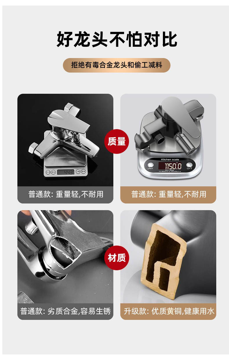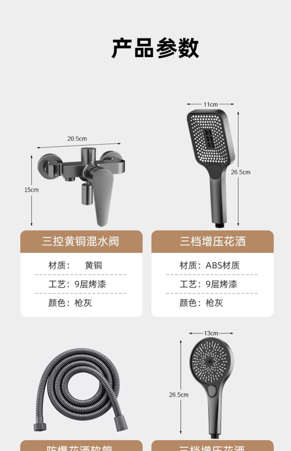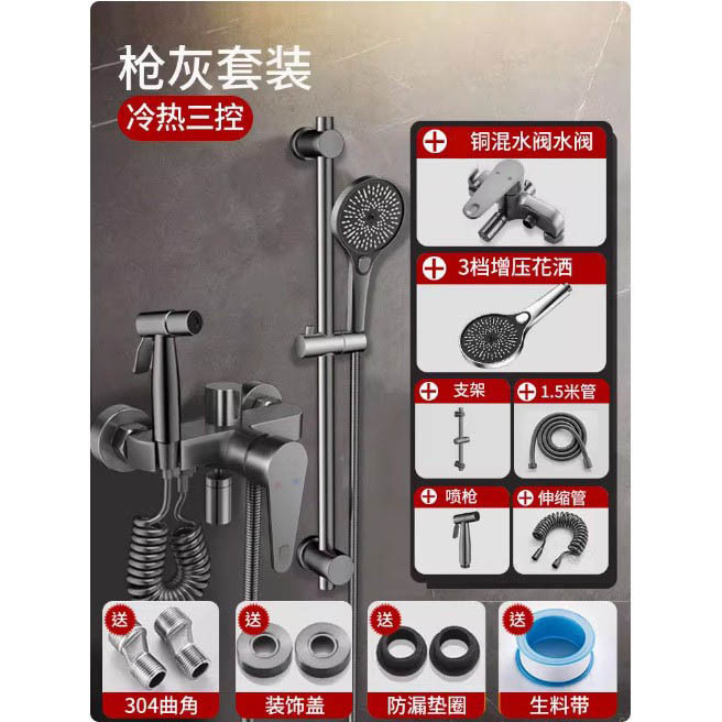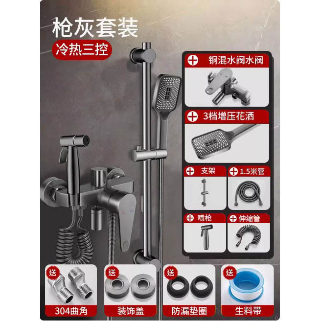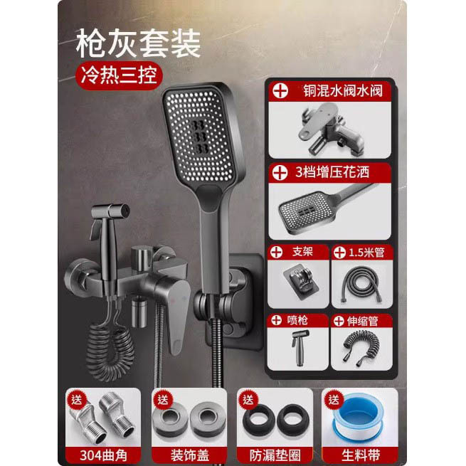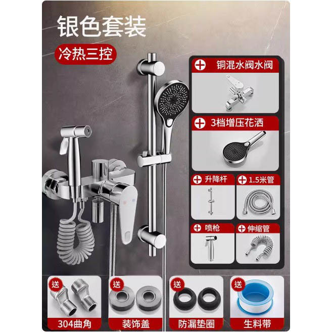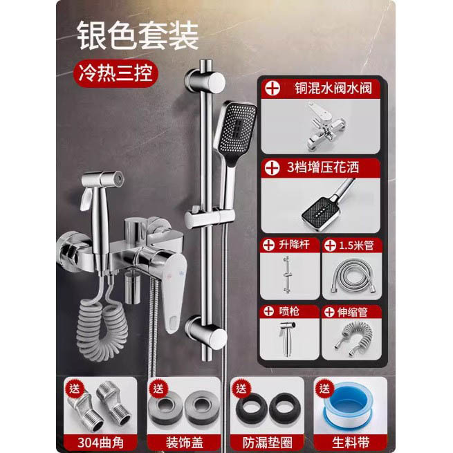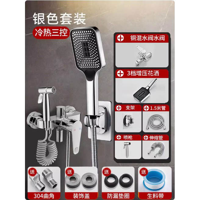 • 밝은 은색 ◆ 심플 샤워 세트 [사각 샤워] 3구 황동 몸체