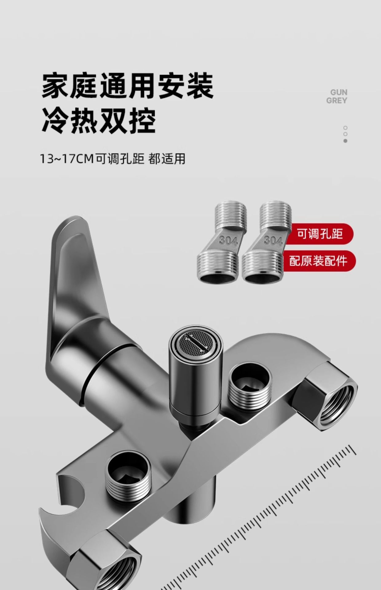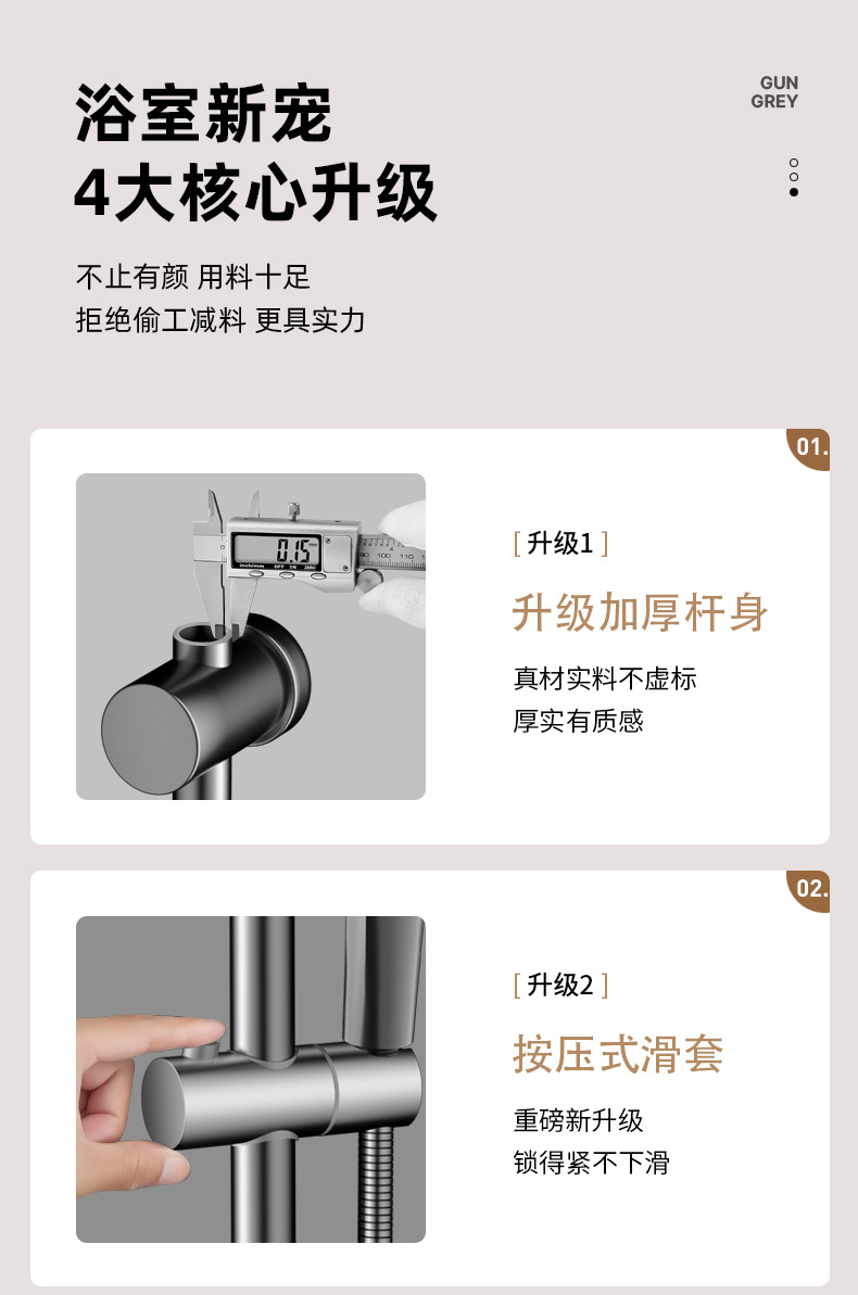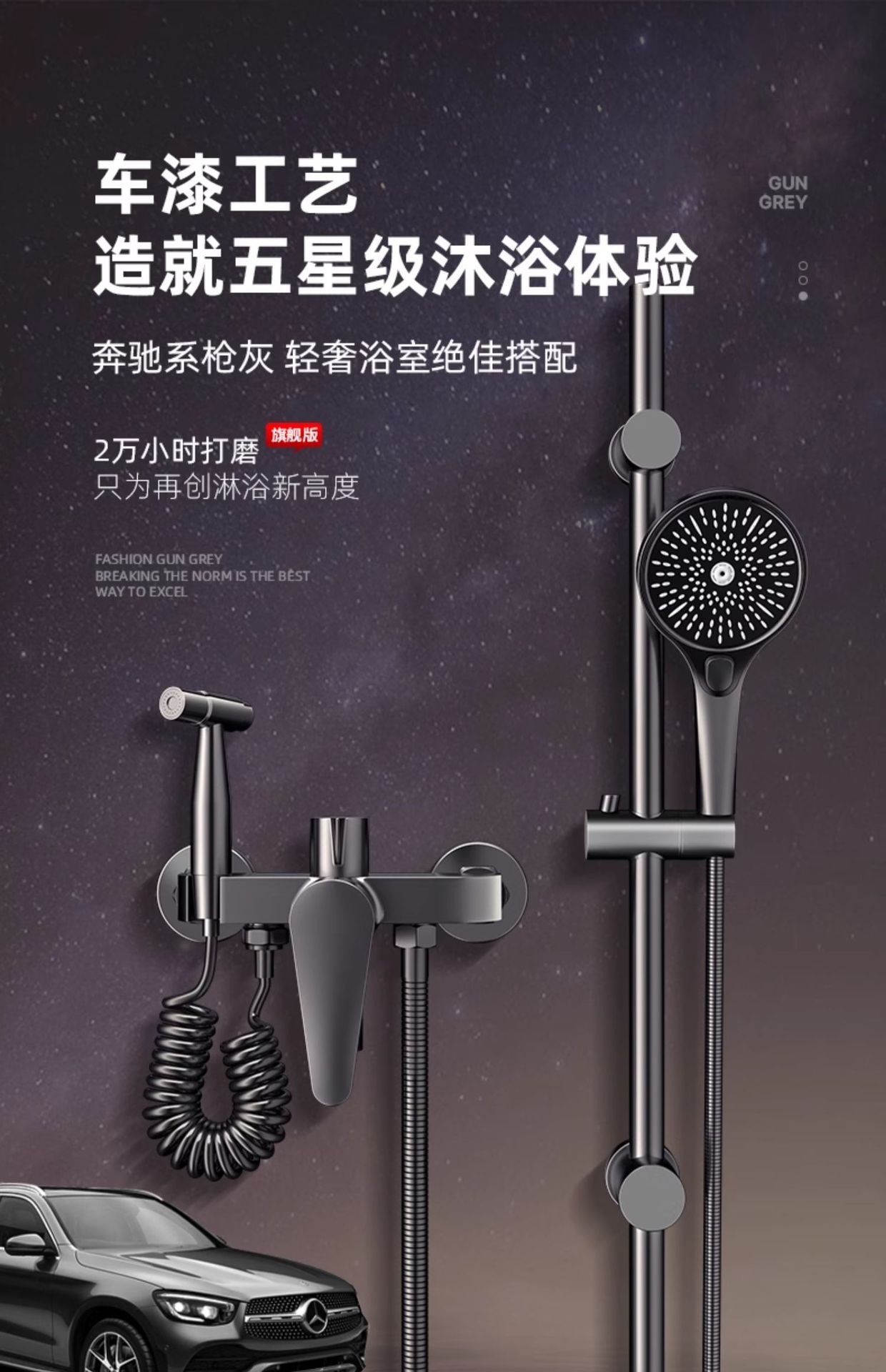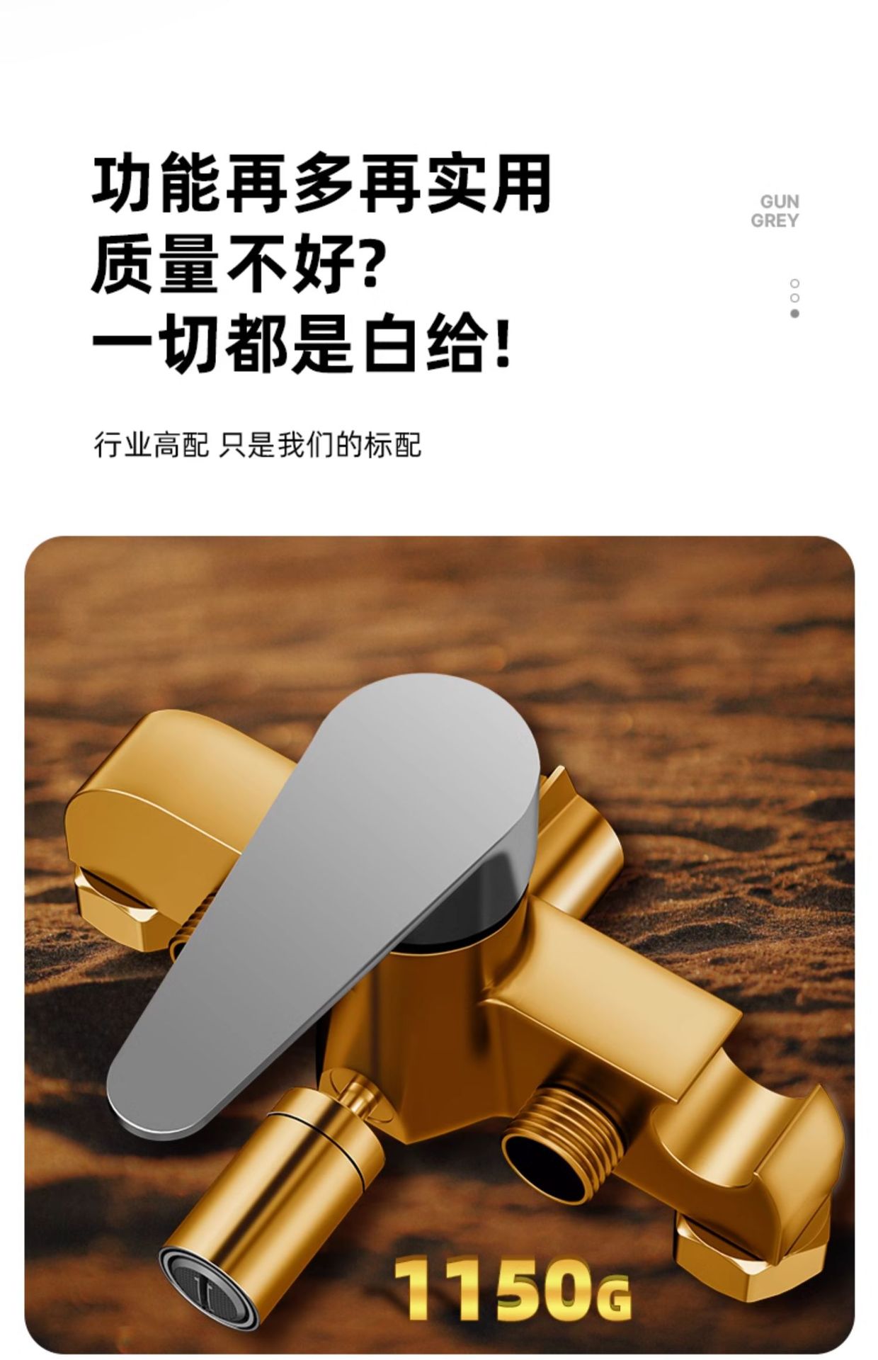 • 밝은 은색◆리프트 샤워 세트 [사각 샤워] 3구 황동 몸체