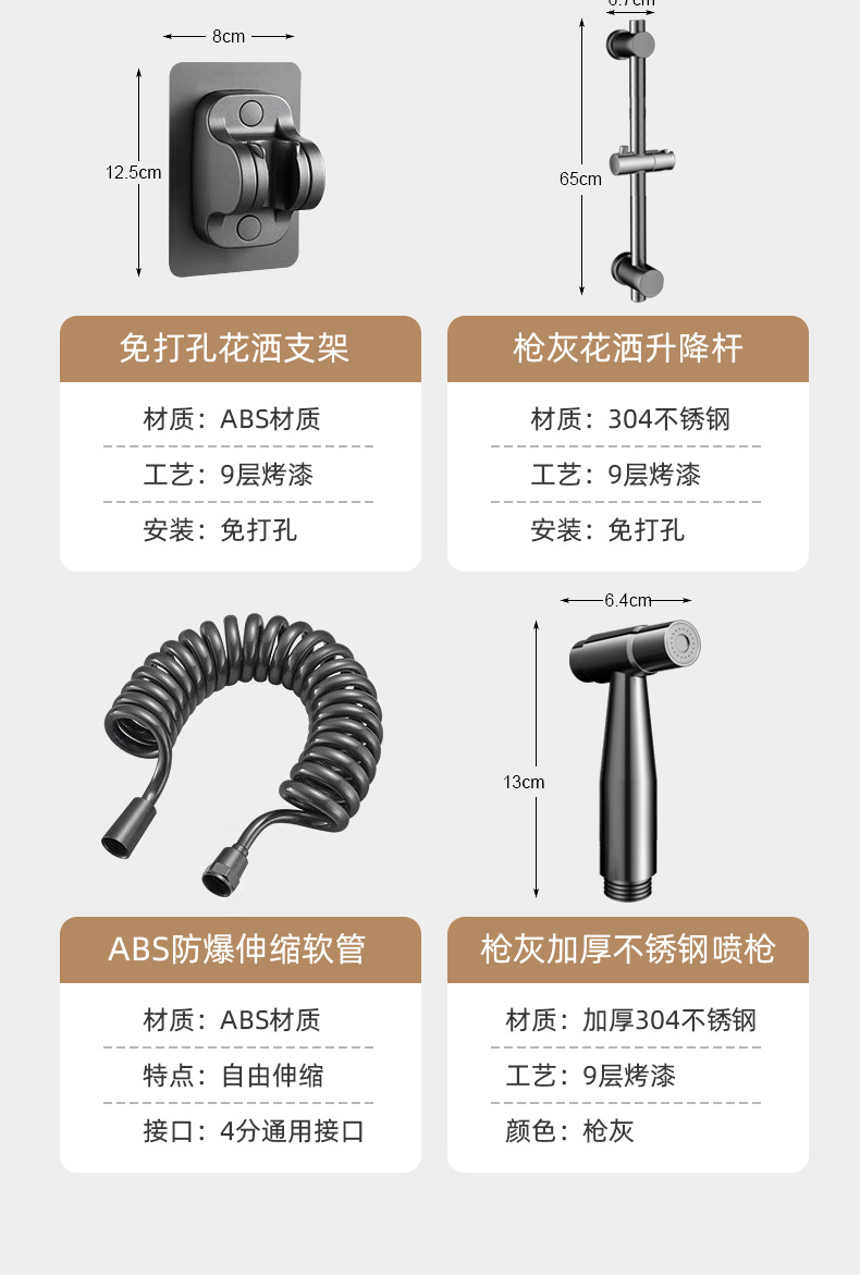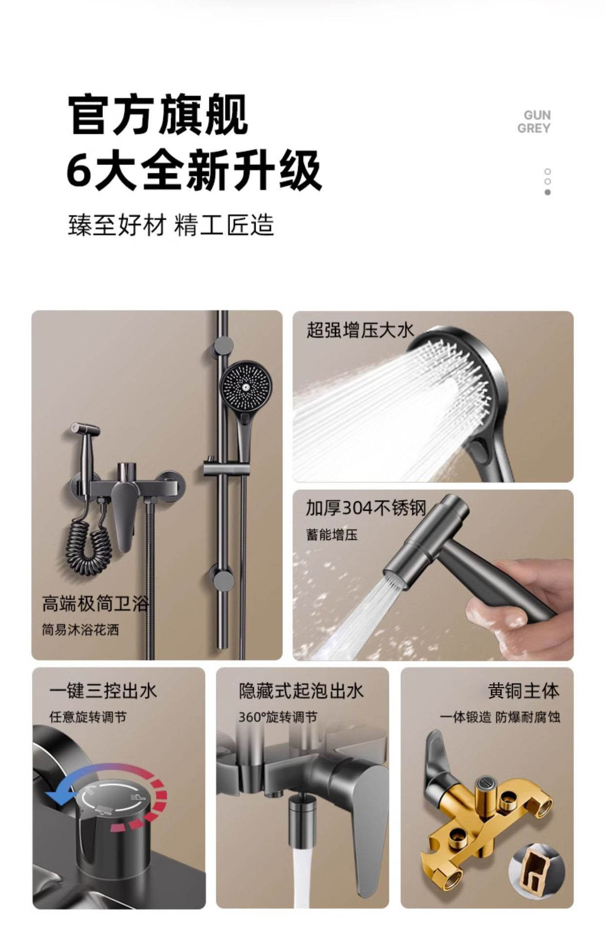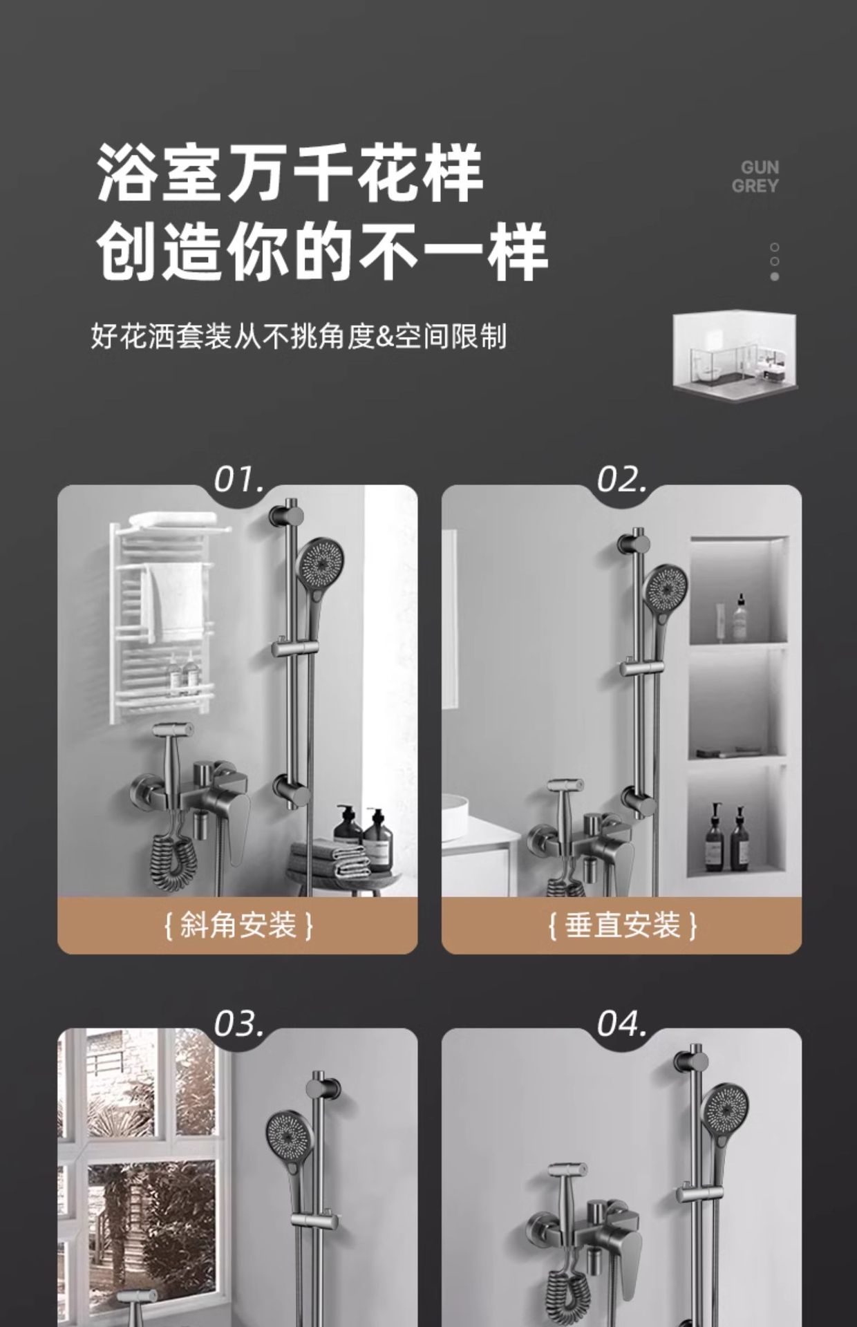 현대식 샤워 헤드 풀 세트, 지붕 없는 가정용 욕실, 간단한 가압 스테인레스 스틸 소형 욕실