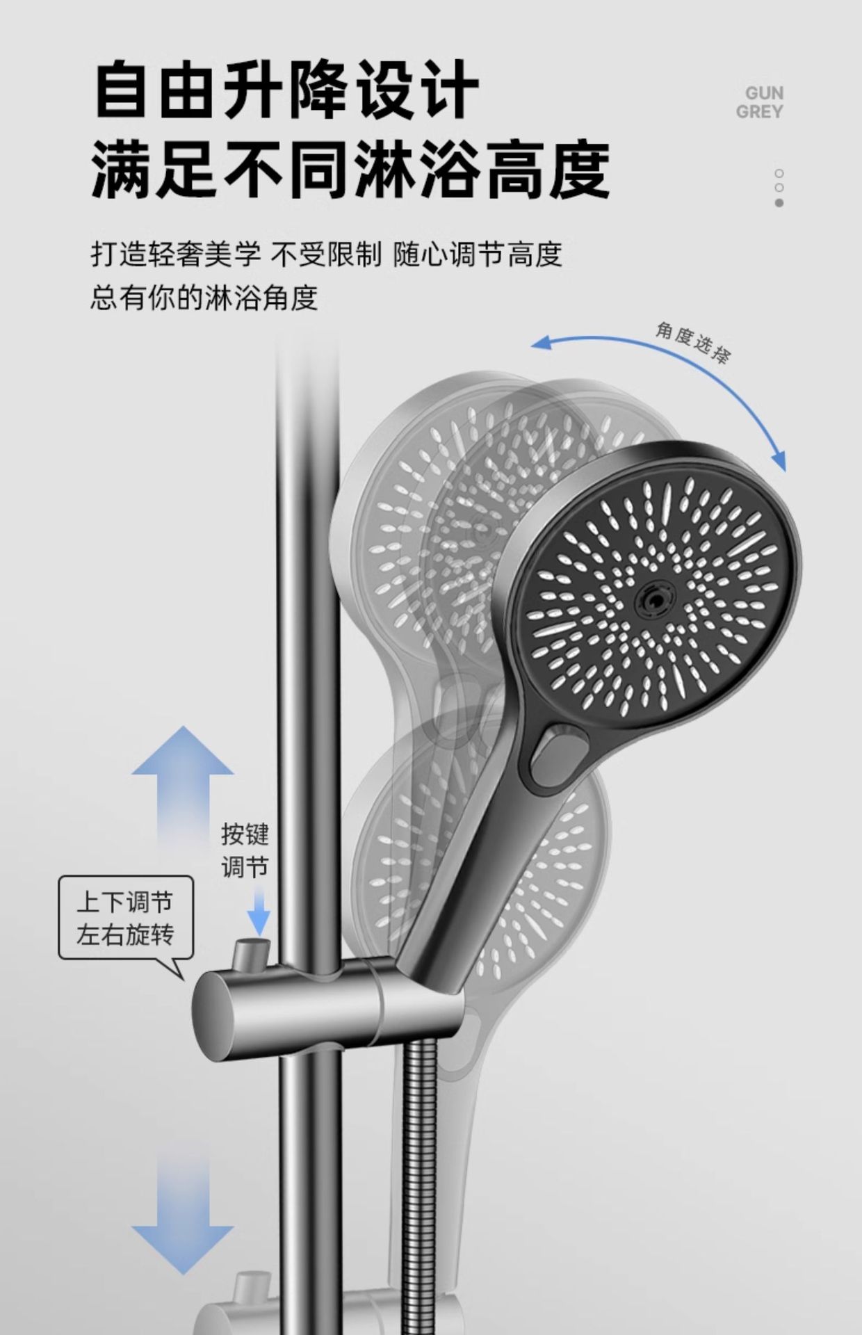 • 밝은 은색◆리프트 샤워 세트 [원형 샤워 헤드] 3구 황동 몸체