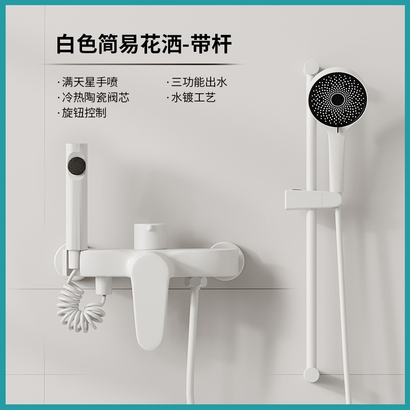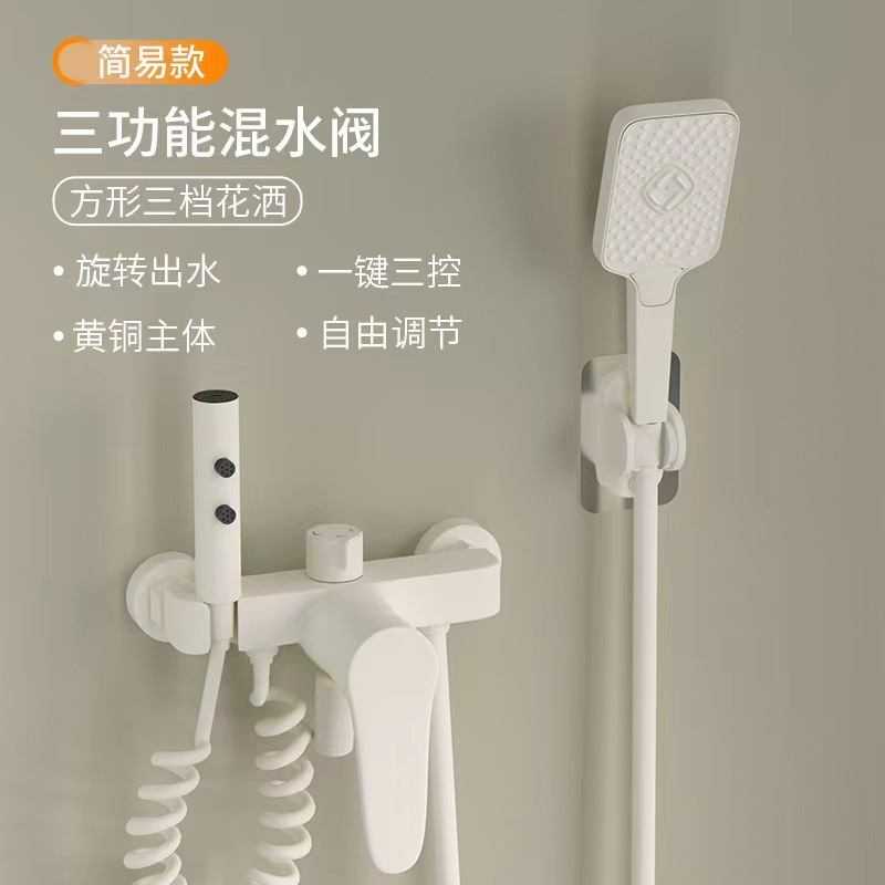 • 하얀색◆심플 샤워 세트 [원형 샤워 헤드] 3구 황동 몸체