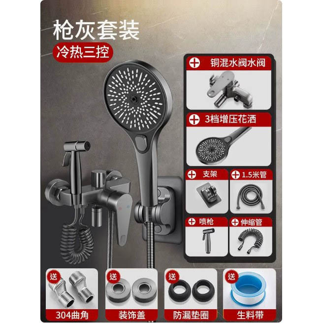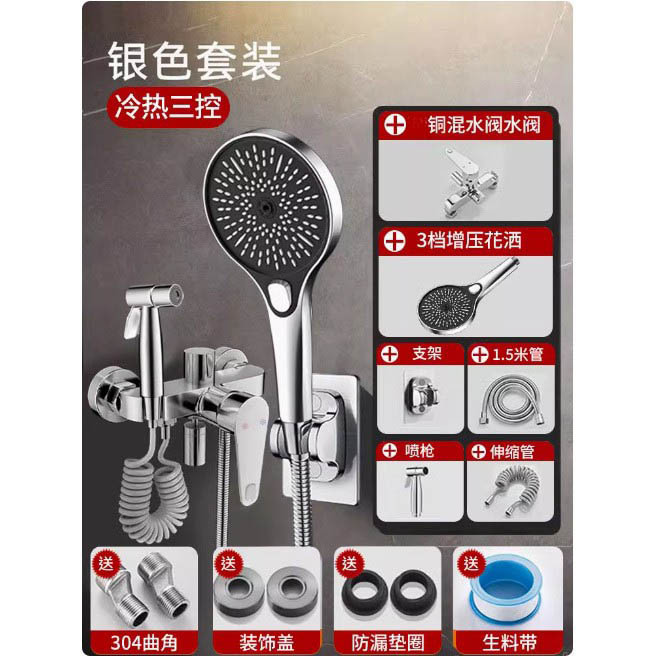 • 밝은 은색◆심플 샤워 세트 [원형 샤워 헤드] 3구 황동 몸체