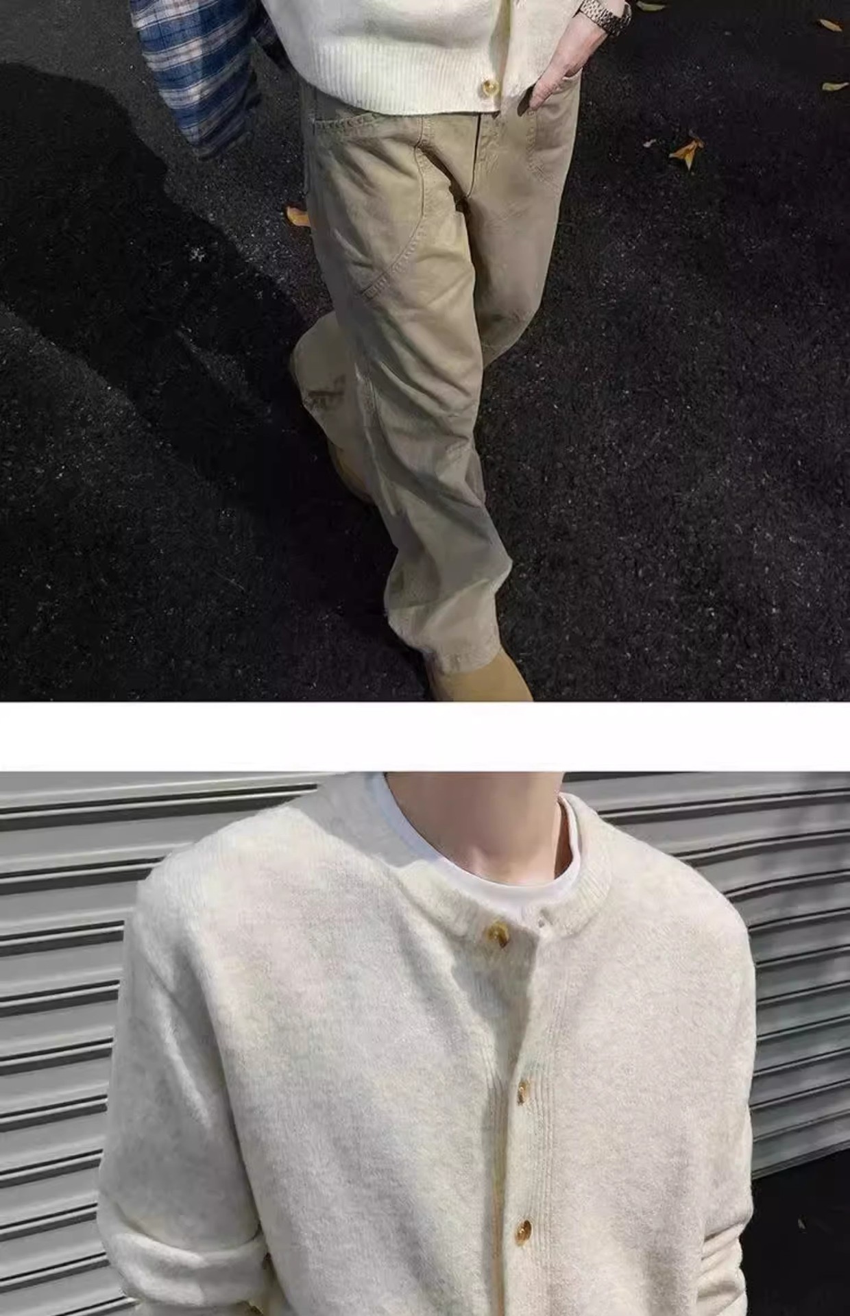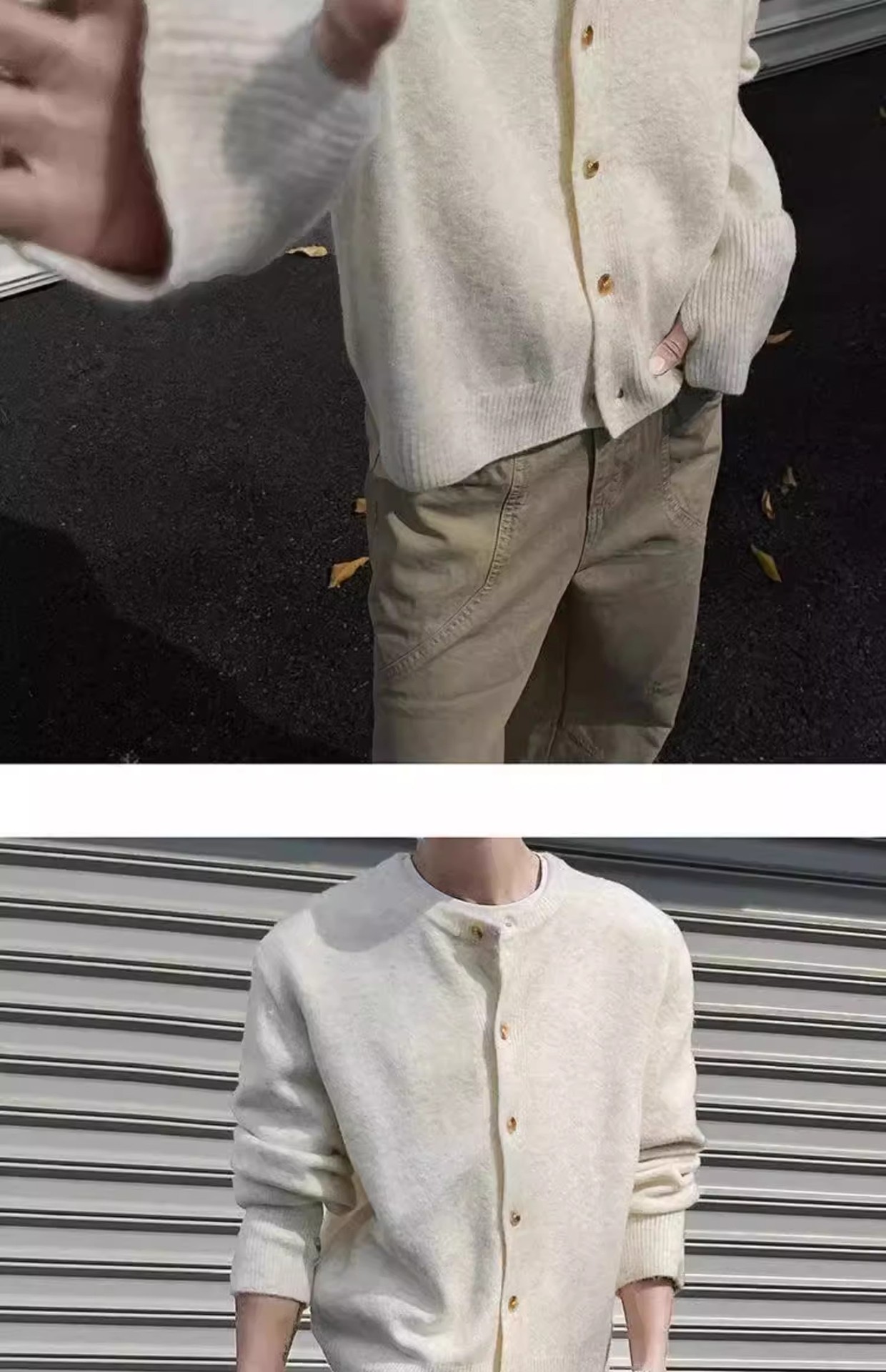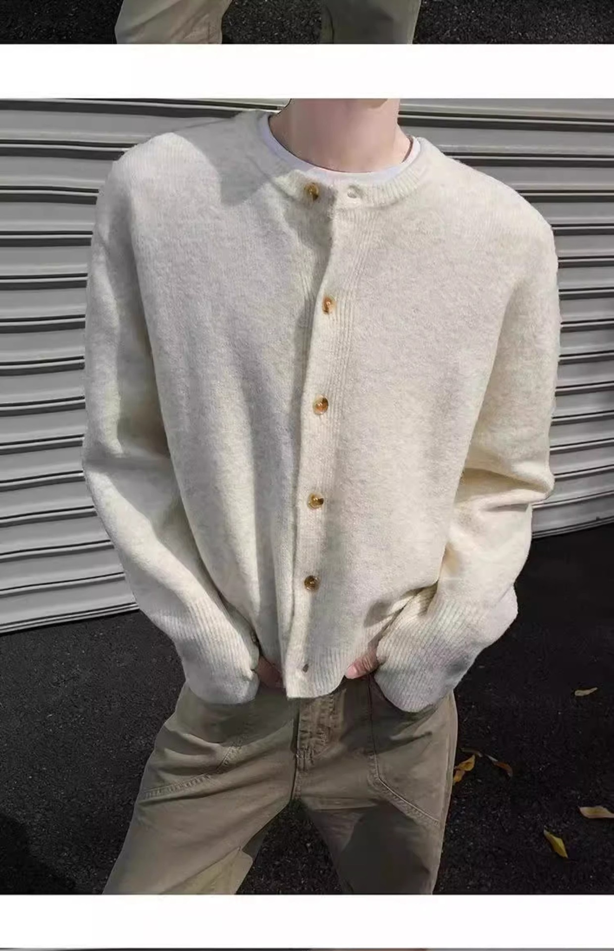 클린 핏 아이보리 가슴 니트 카디건 남성 가을 및 겨울 미국 스타일 게으른 스타일 고급 헤비 스웨터 재킷스토어 가기