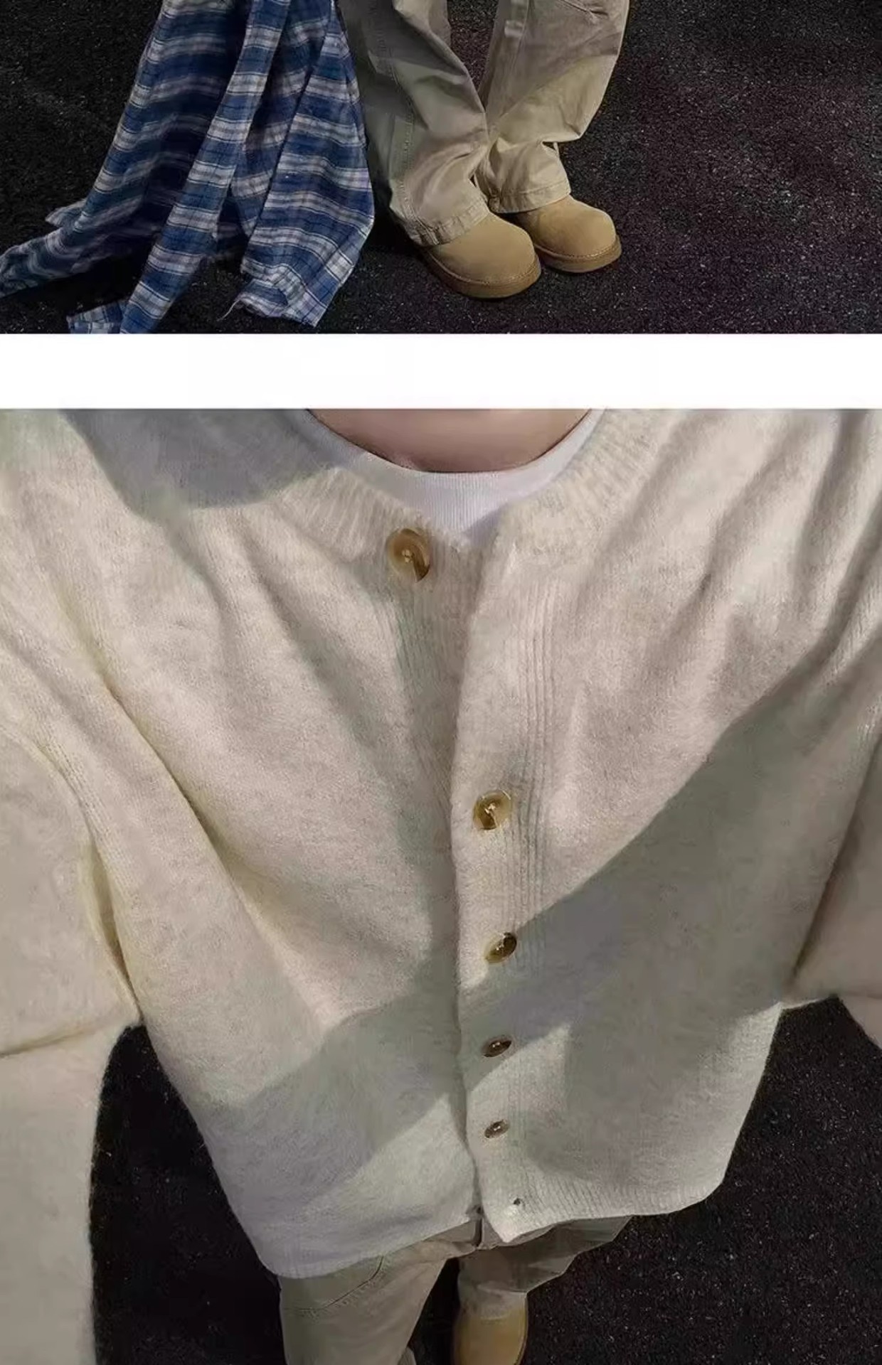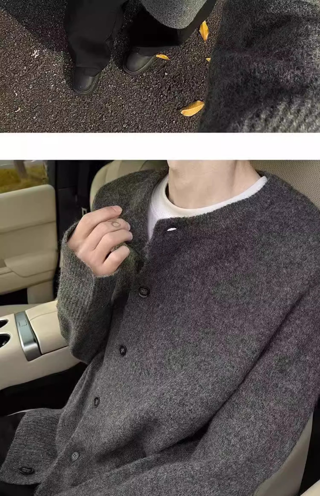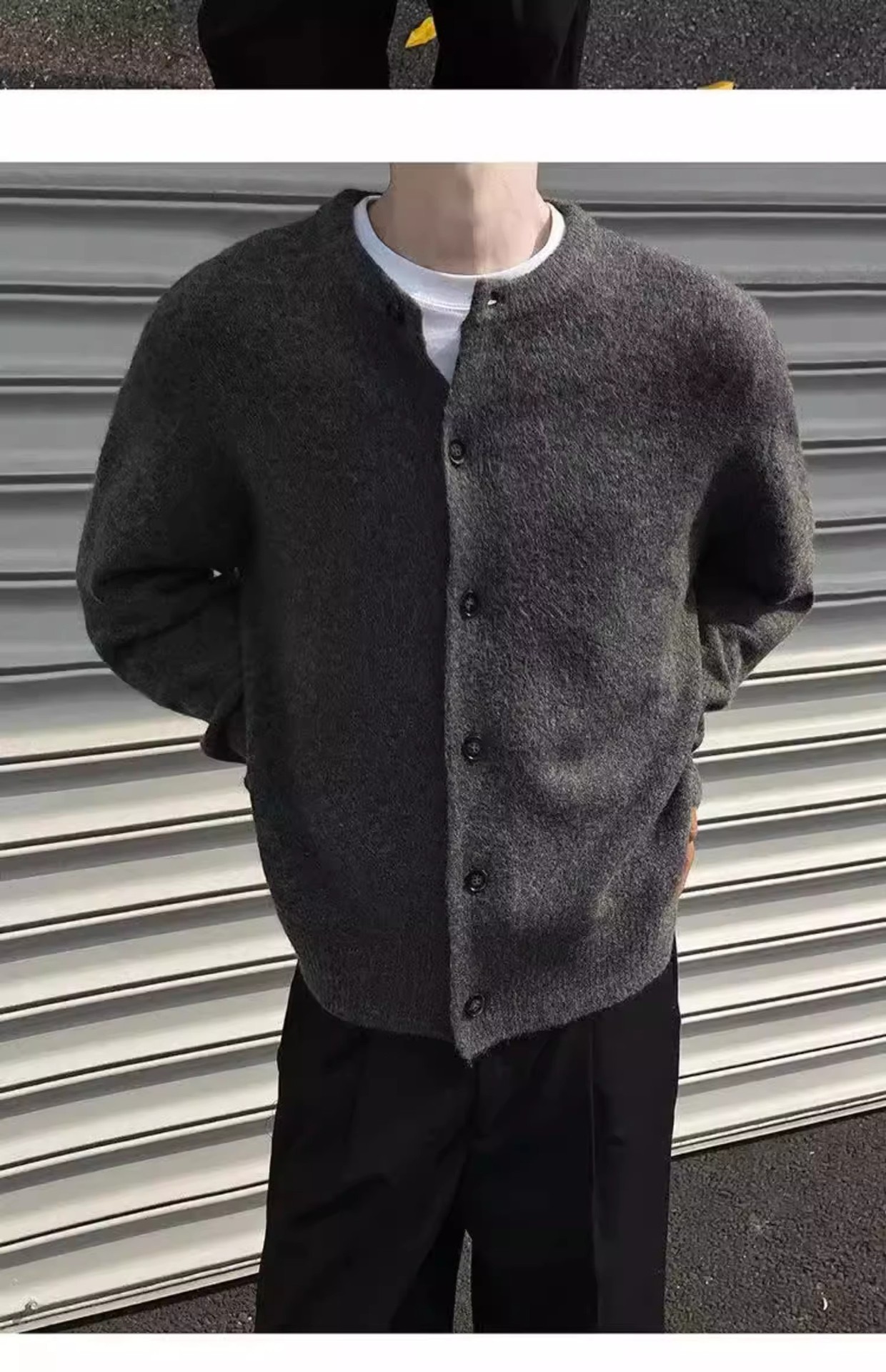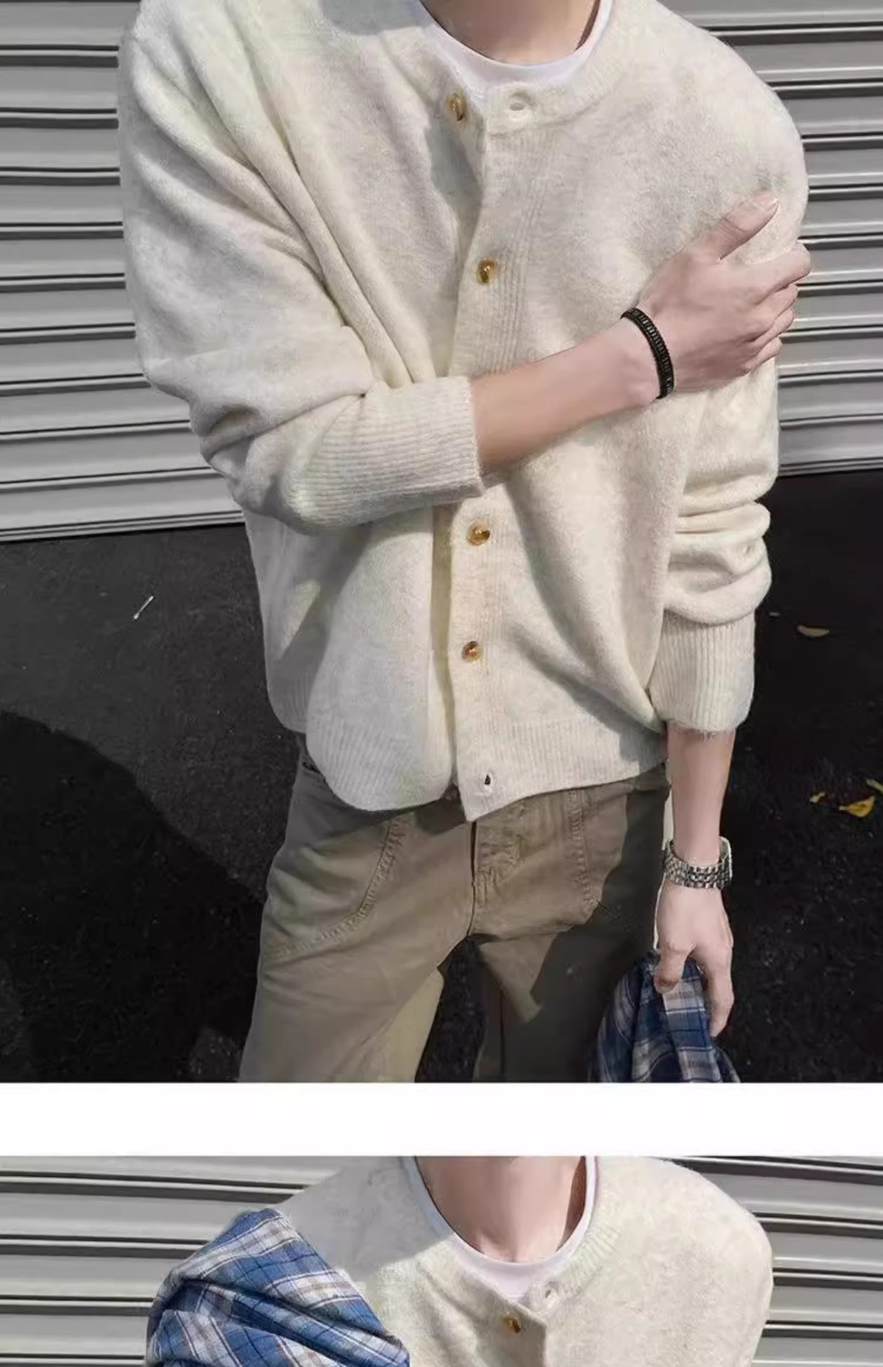 클린 핏 아이보리 가슴 니트 카디건 남성 가을 및 겨울 미국 스타일 게으른 스타일 고급 헤비 스웨터 재킷스토어 가기