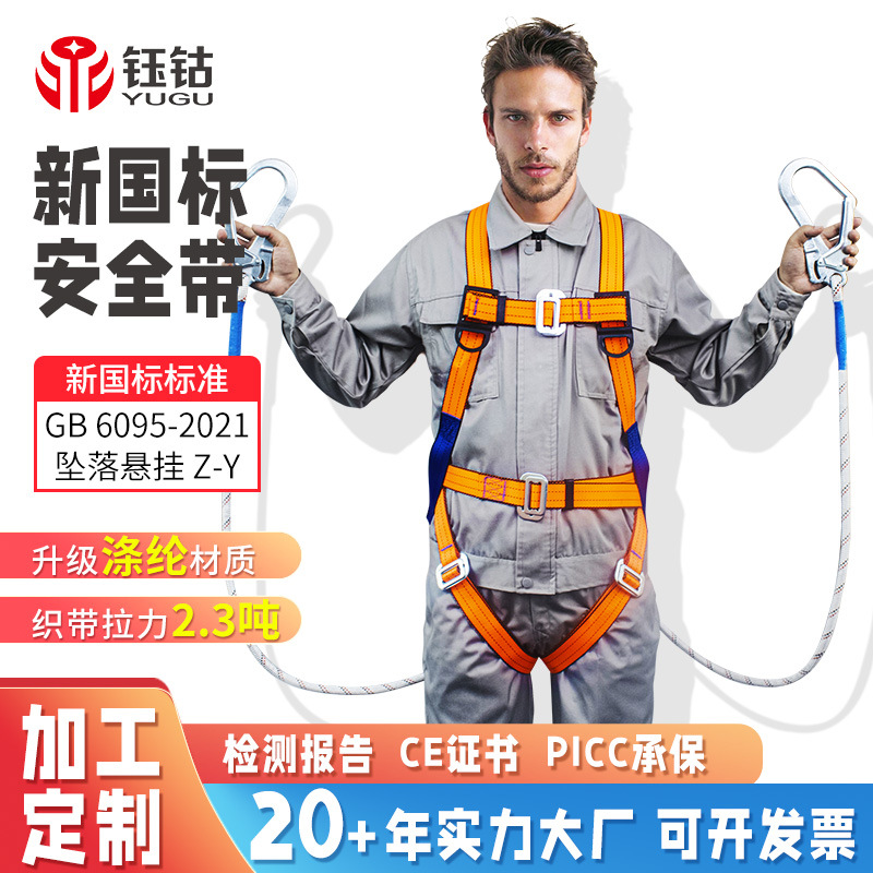 고공 작업 낙하 방지 유럽식 이중 대형 후크 안전 벨트를 위한 맞춤형 새로운 국가 표준 5점 전신 안전 벨트