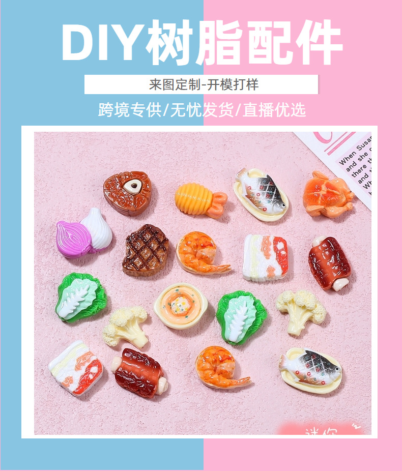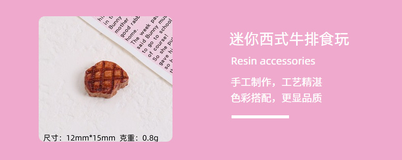 미니 서양 스테이크 음식 놀이 크림 접착제 DIY 수제 헤어핀 소재 수지 액세서리 도매스토어 가기