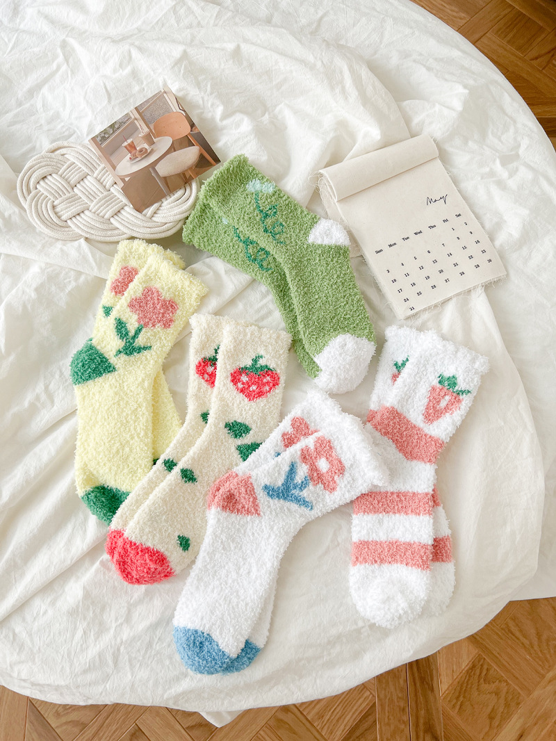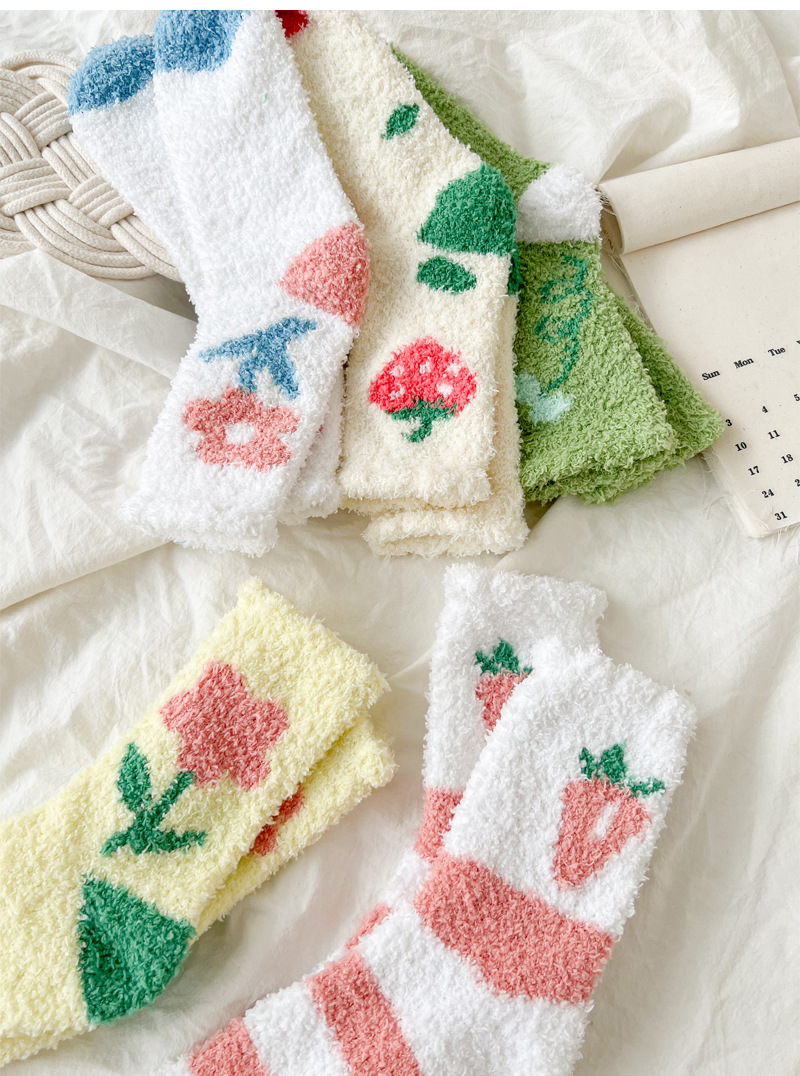 가을과 겨울 산호 양털 양말 두꺼운 따뜻한 집 수면 만화 꽃에서 신선한 중간 튜브 바닥 양말스토어 가기