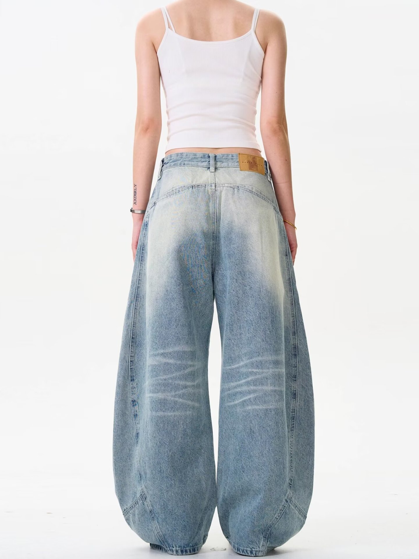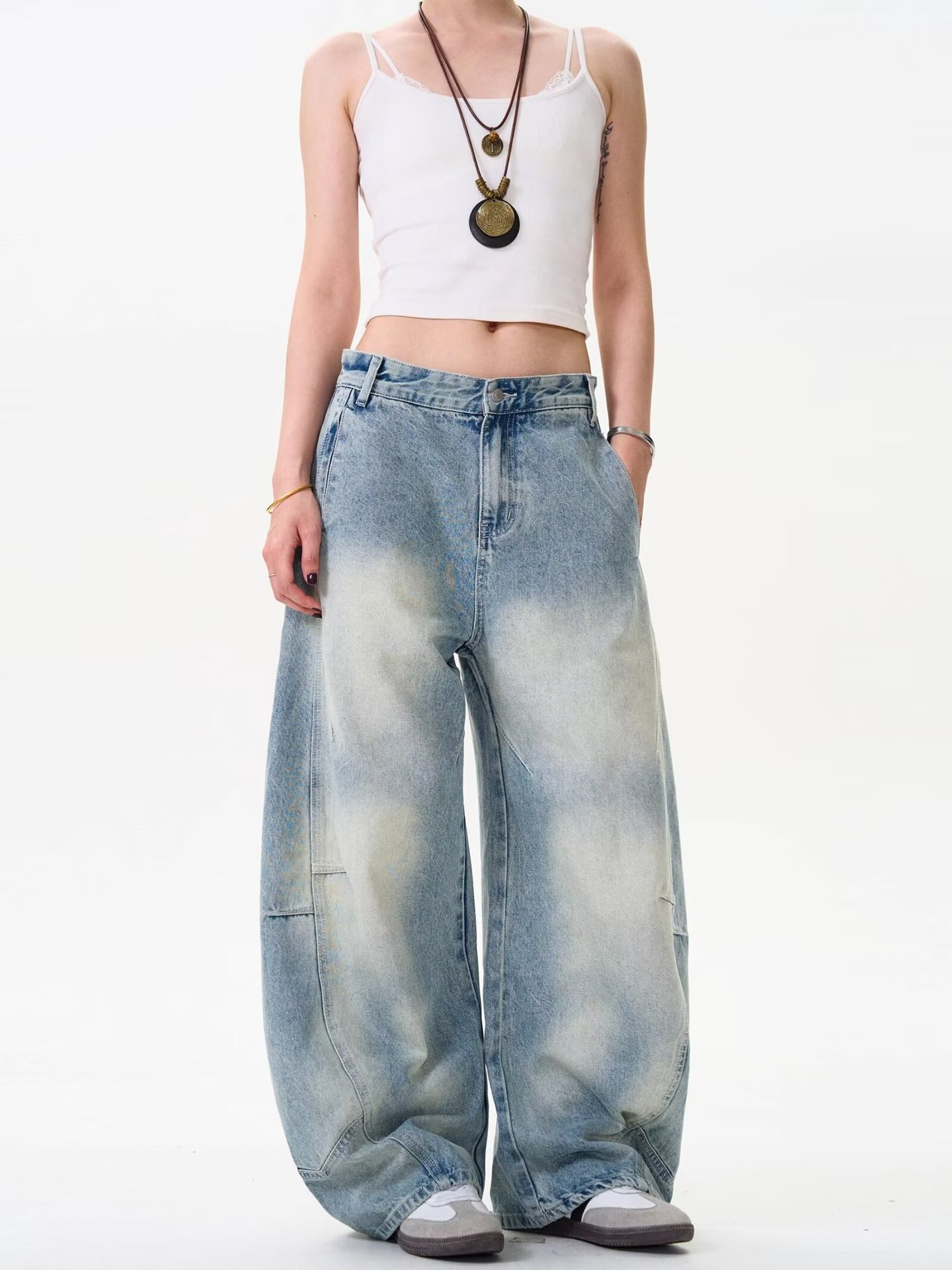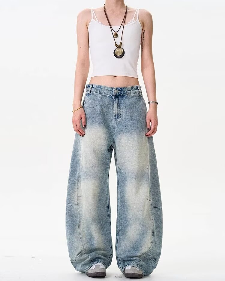 아메리칸 스타일 레트로 오래 된 시멘트 노란색 넓은 다리 청바지 남성과 여성의 2024 높은 허리 느슨한 슬리밍 스트레이트 바지스토어 가기
