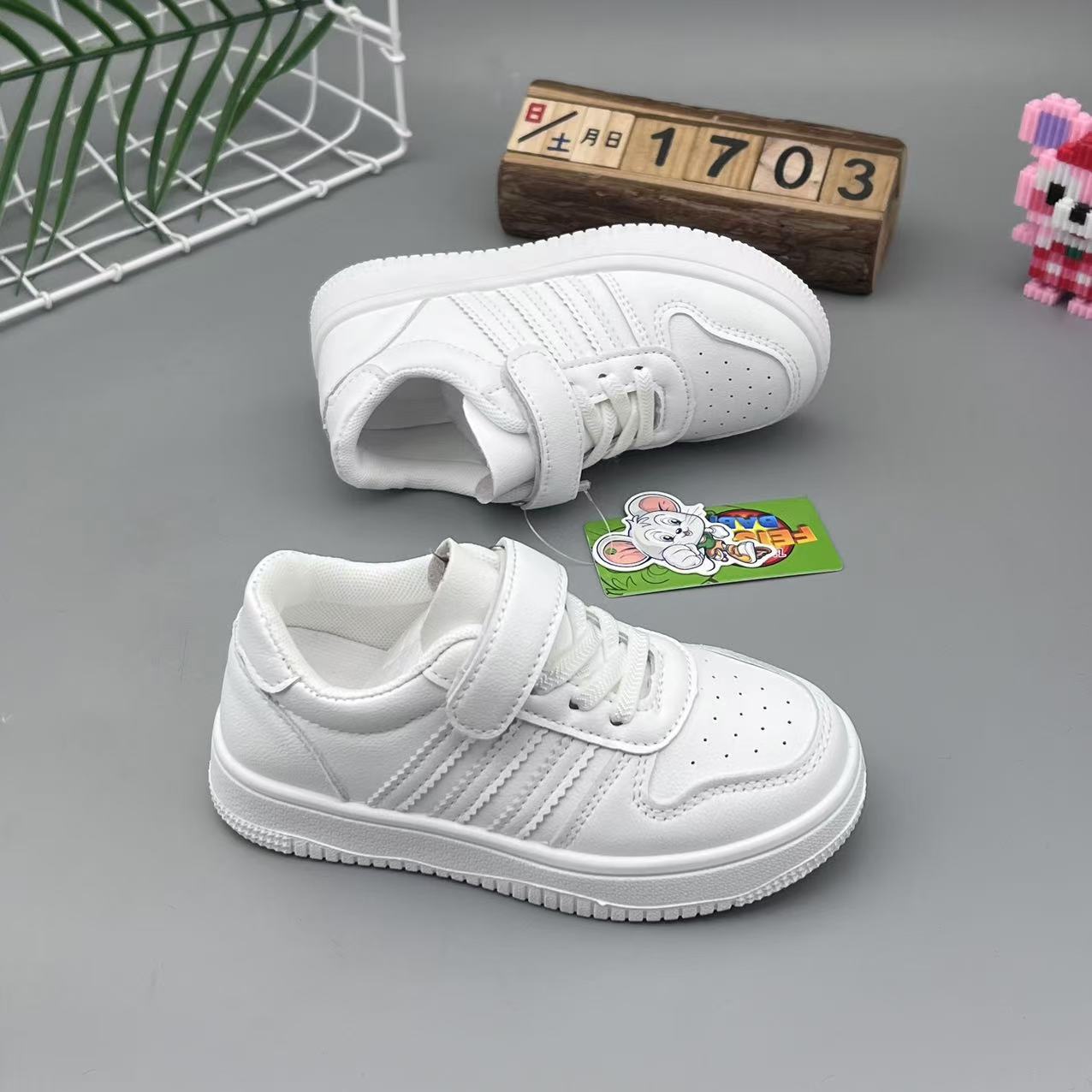 남성과 여성의 작은 흰색 신발 어린이 신발 2025 새로운 가을 운동화 가죽 벨크로 패션 어린이 보드 신발 운동화스토어 가기
