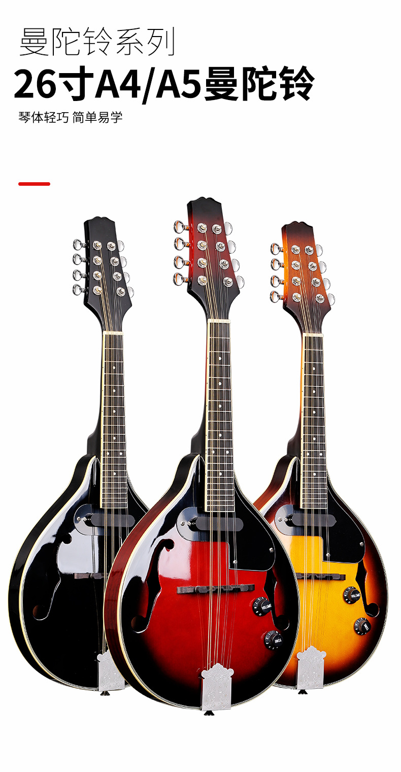 도매 서양 악기 일렉트로 어쿠스틱 A4/A5 만돌린 8 현 만돌린 EQ 초보자 chen mandelin 소개