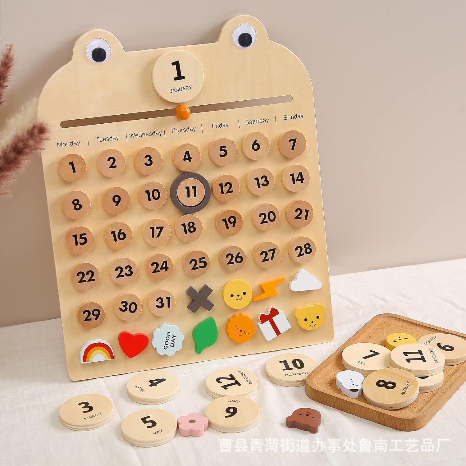 나무 책상 달력 어린이 교실 교육 용품 아기 달 날짜 계몽 교육은 창조적 인 단단한 나무 영원한 달력을 돕습니다