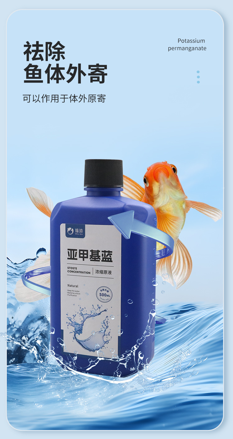 메틸 블루 어항 물고기는 검역 관상어 잉어 흰 반점 정화 물 곰팡이 썩은 몸 썩은 꼬리 관상 용제를 죽이기 위해 사용됩니다.스토어 가기