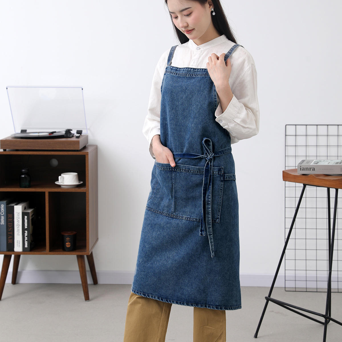 국경 간 대외 무역 면화 세척 데님 크로스 스트랩 앞치마 오염 방지 가정용 다중 장면 사용 도구 앞치마스토어 가기